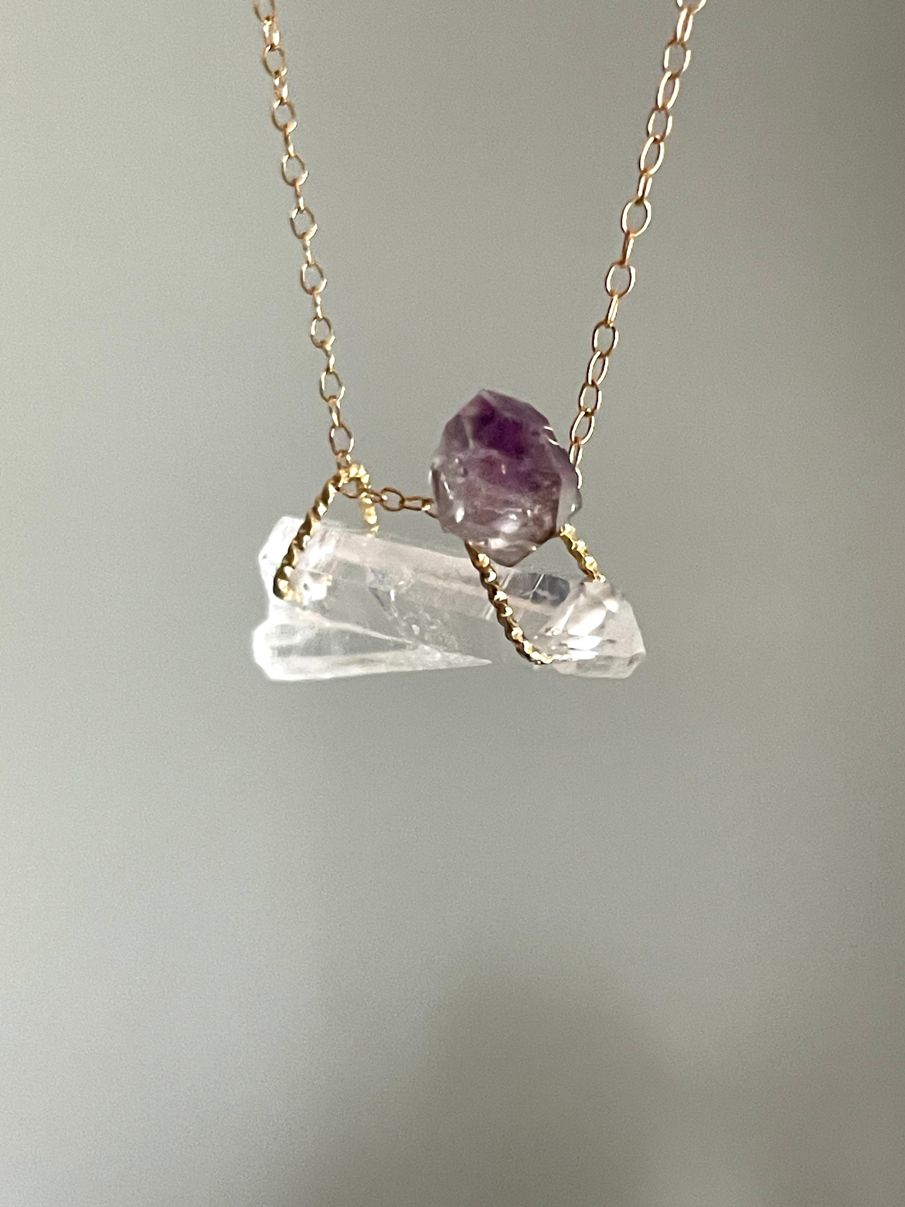 一筋の光を思わせるようなレムリアンシードクォーツと、深い紫と銀の煌めきを内包したスーパーセブン。この2つの石が並ぶことで、遠い記憶と未来の直感が、今のあなたに静かに重なるような感覚を生み出します。