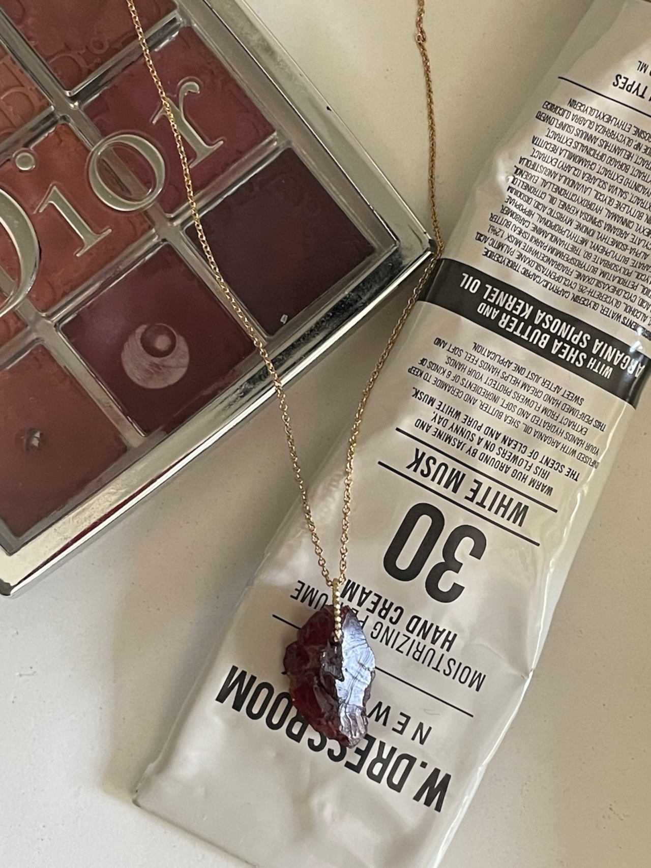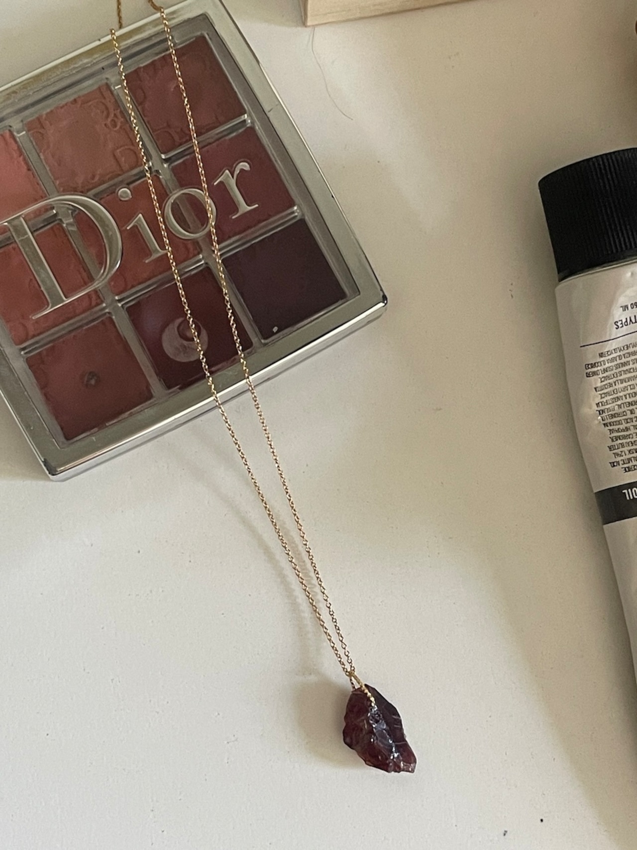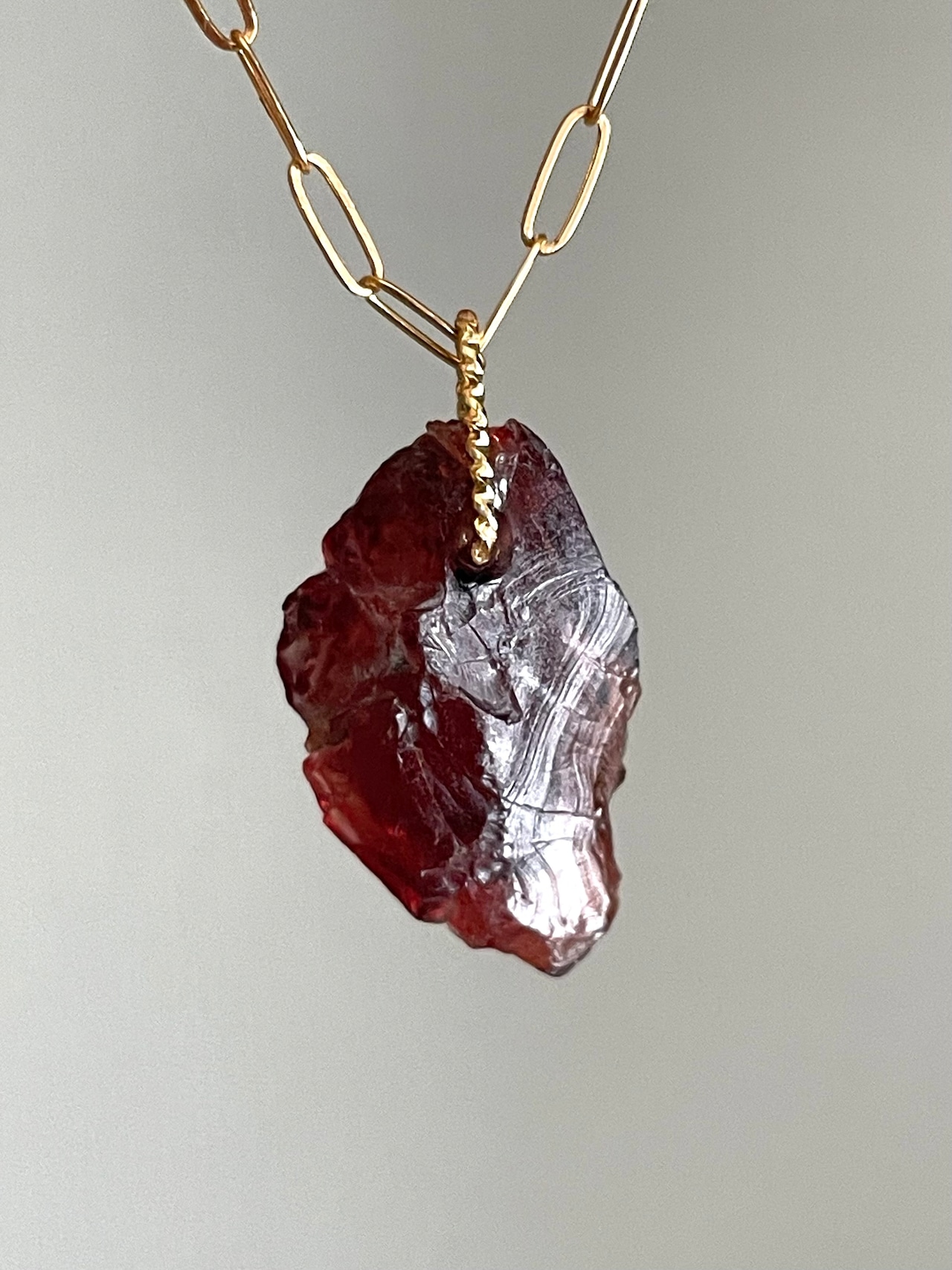 深く燃えるような赤を湛えた、ガーネットの原石チャーム。