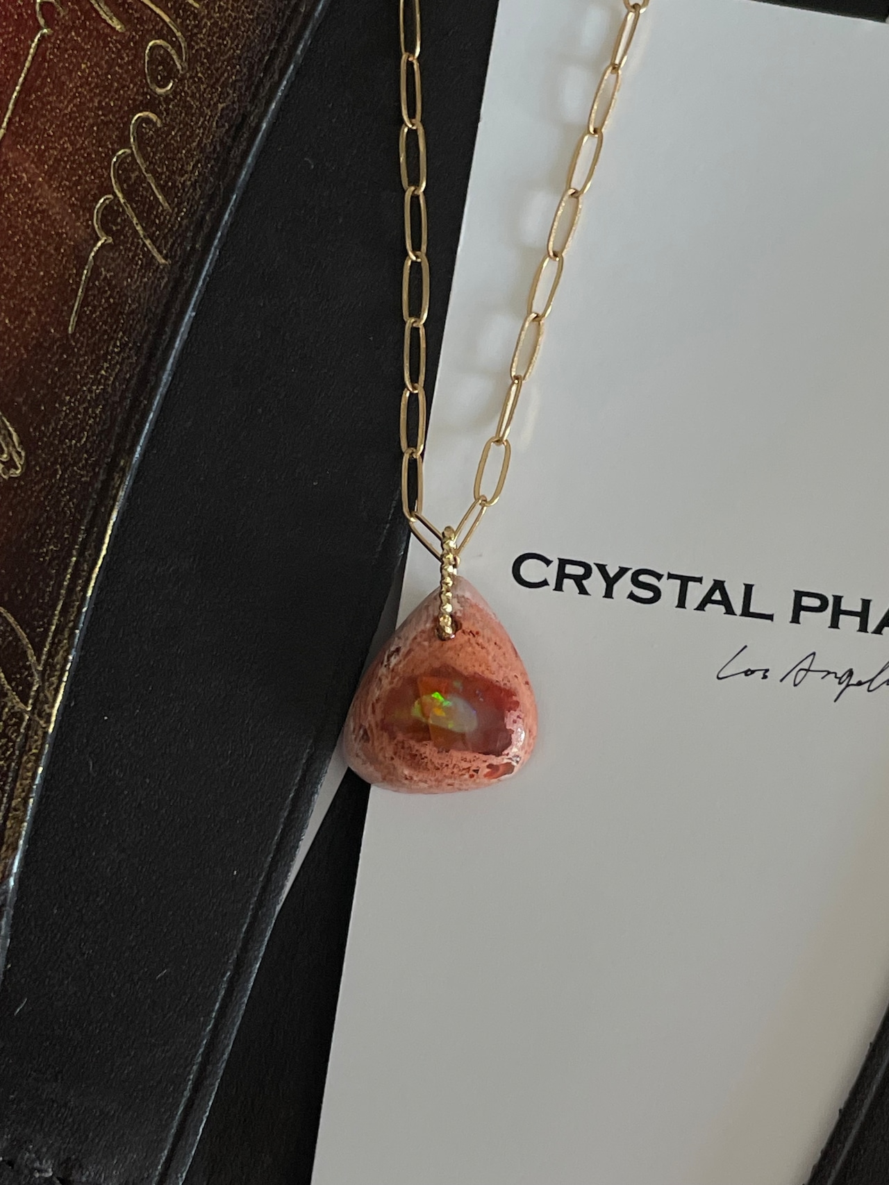 ピンクやオレンジの母岩に包まれた、あたたかく元気いっぱいのオパールマトリックス。