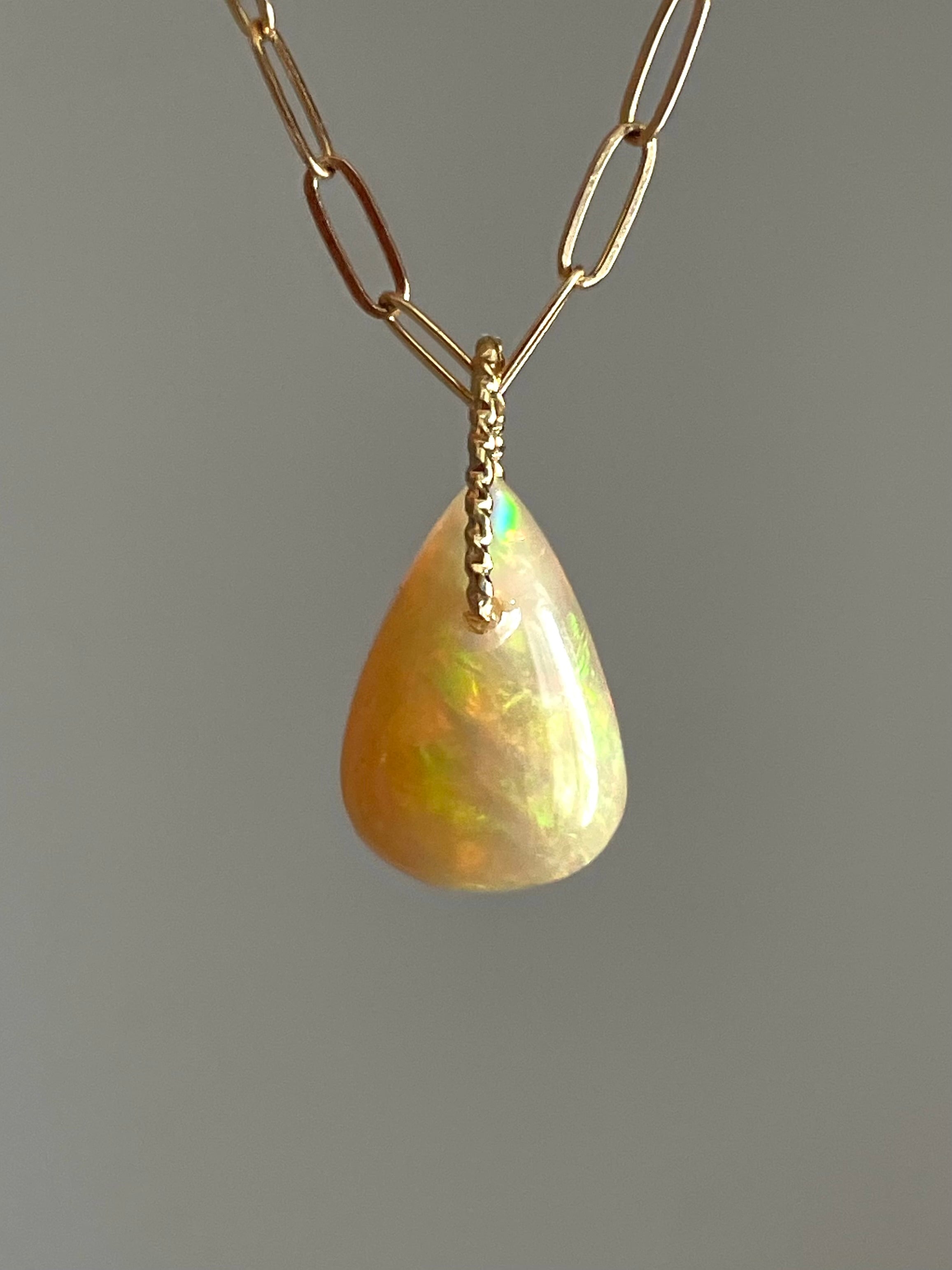 オレンジベージュの優しい色味に包まれた、ティアドロップ型のエチオピアンオパール。