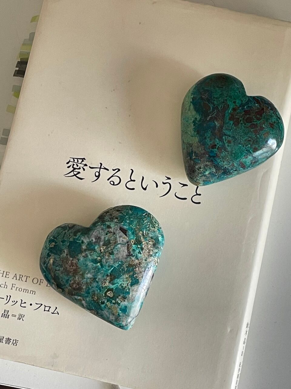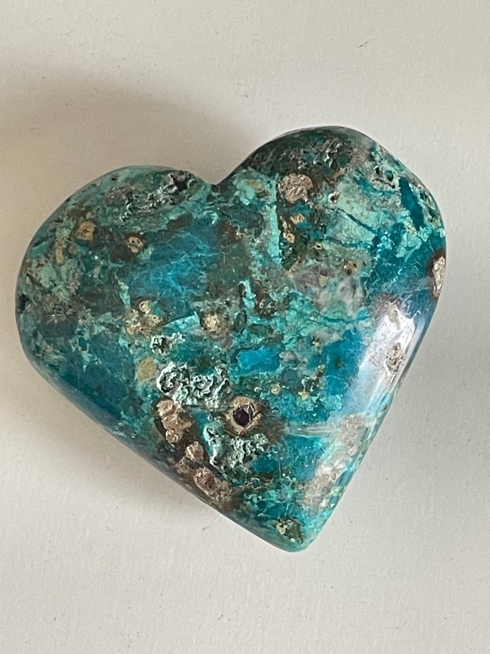 大きなハートのクリソコラ。美しいブルーとグリーンが重なり合い、大地の奥深さと優しさを感じるストーンです。熱くなった感情、火照った頭をクールダウンして、鼓動をゆっくりと戻してくれるような存在感。