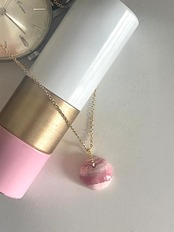小さなまんまるが飛び切り可愛いロードクロサイト(インカローズ)をペンダントチャームに。いちごパフェのようなミルキーで優しい帯模様が重なって、光を受けるたび艶やかに発色します。ひとつとして同じ模様のない、一点ものの表情。