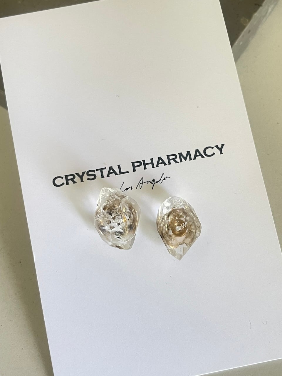 小さな結晶の彫刻、ヒマラヤ産ハーキマータイプのクォーツをピアスに。