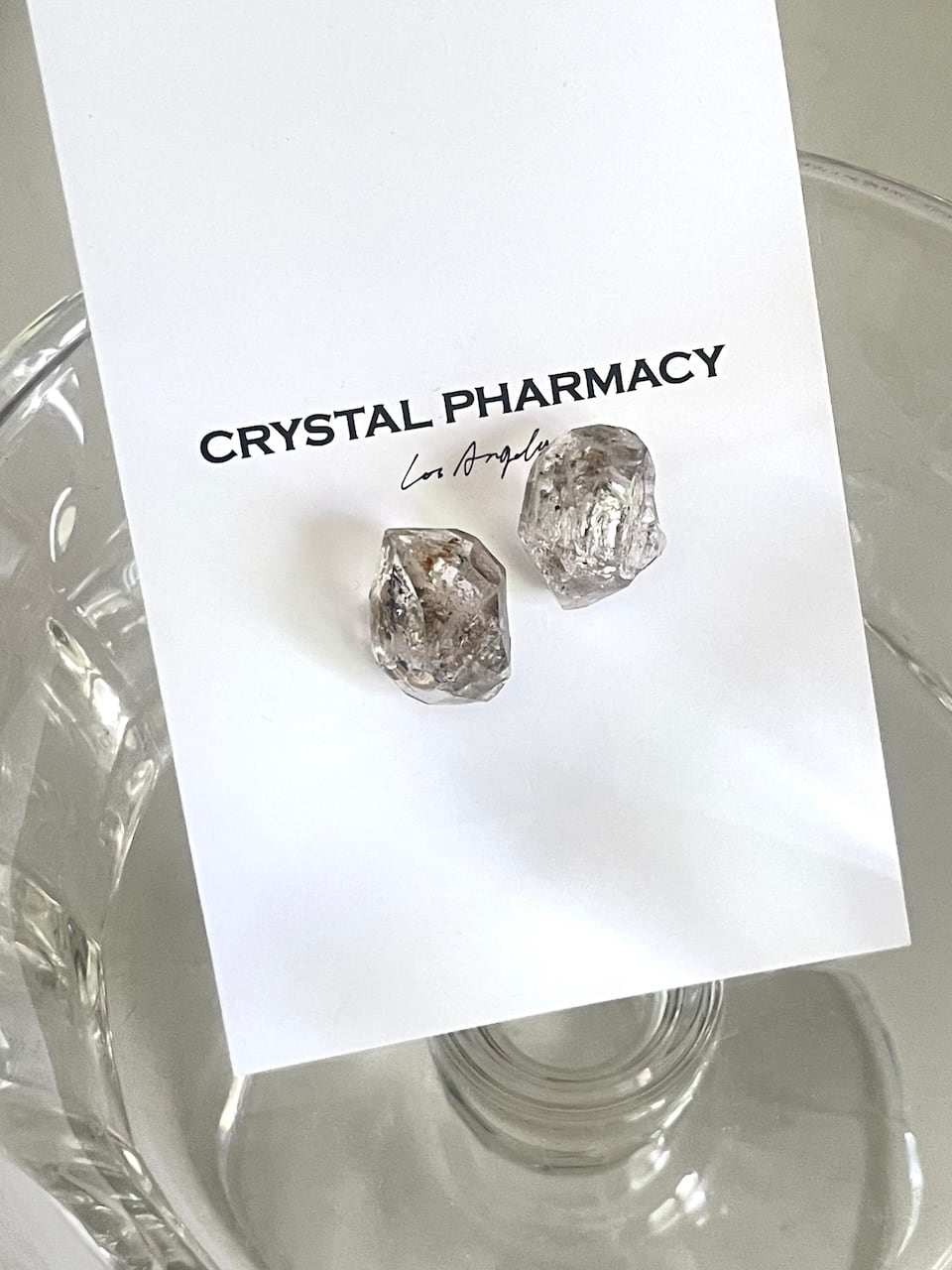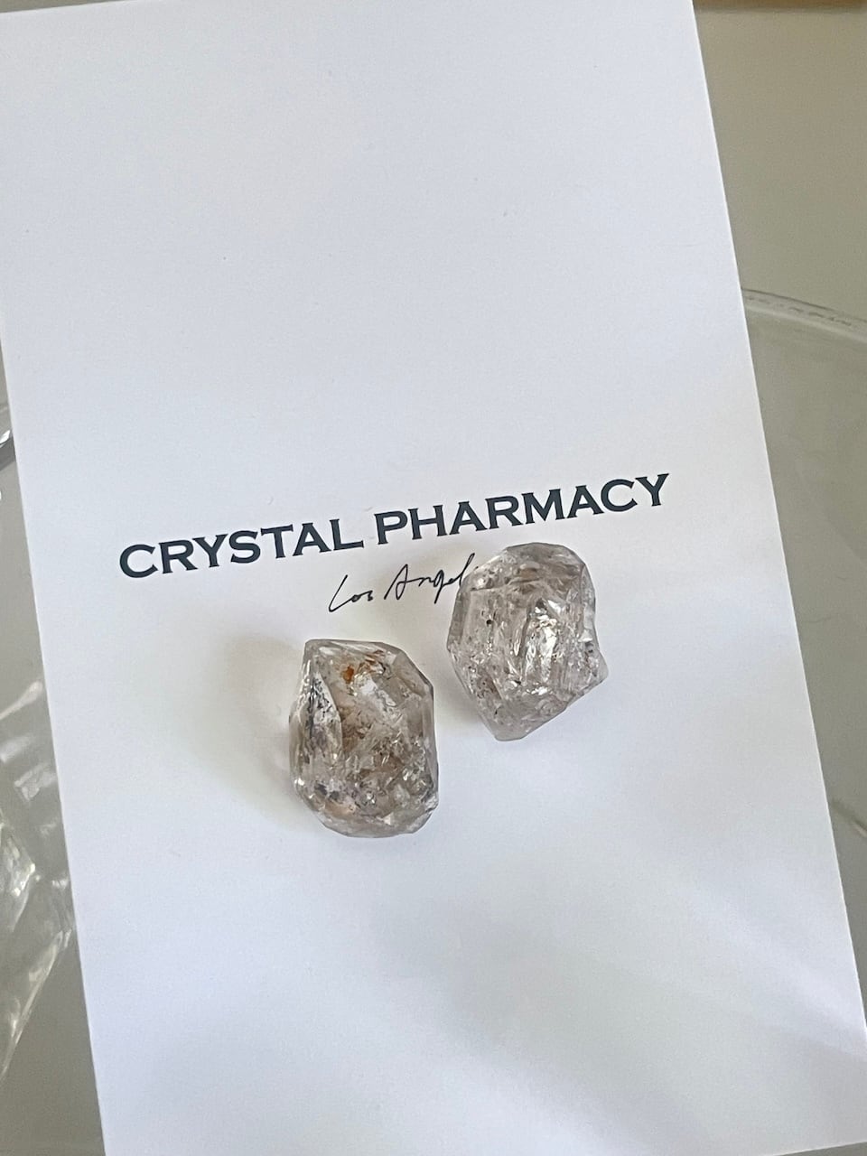 油膜のような神秘的な煌めきを内包した、ペトローレムクォーツの原石ピアス。無垢な水晶の中に、わずかに浮かぶオイルのしずくが光を反射し、角度によって黄金の輝きを放ちます。その神秘的な表情は、天然のアートピースのよう。原石ならではのナチュラルな立体感と抜け感が耳元にニュアンスを添え、モードにもナチュラルにも、装いに静かな存在感をプラスしてくれます。