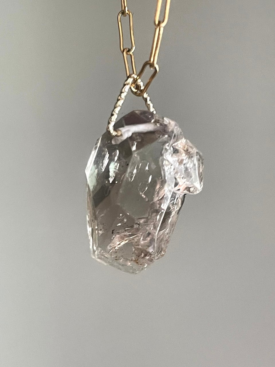 大ぶりで多面体、蕾のような子持ちのスモーキーダイヤモンドクォーツ原石を、ペンダントチャームに仕立てました。揺るぎない個性、静かな力強さ、大地のような安心感をもたらす一粒です。