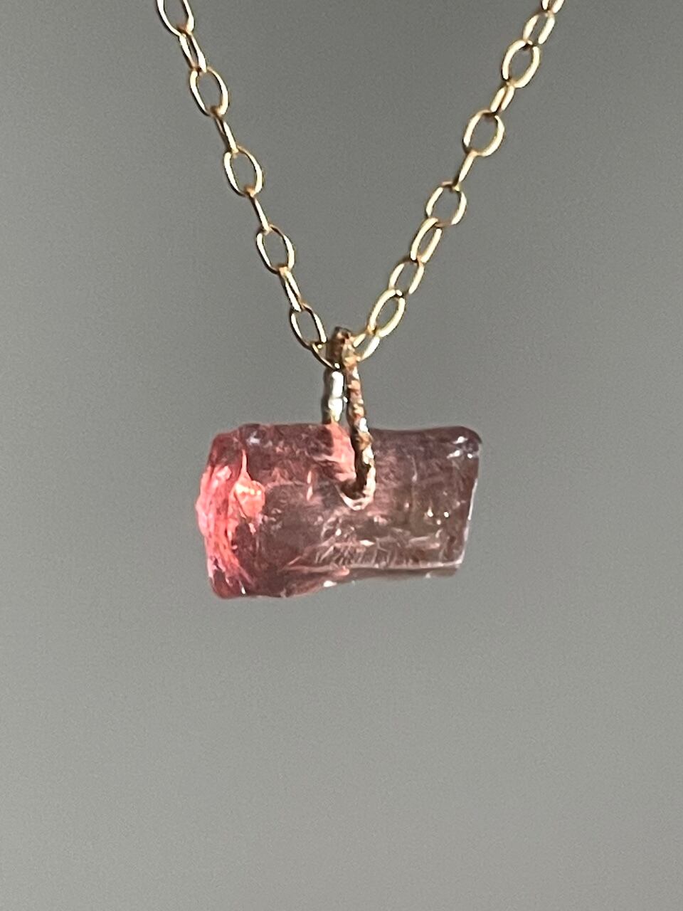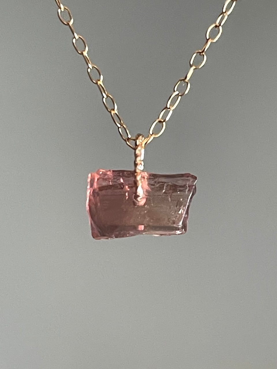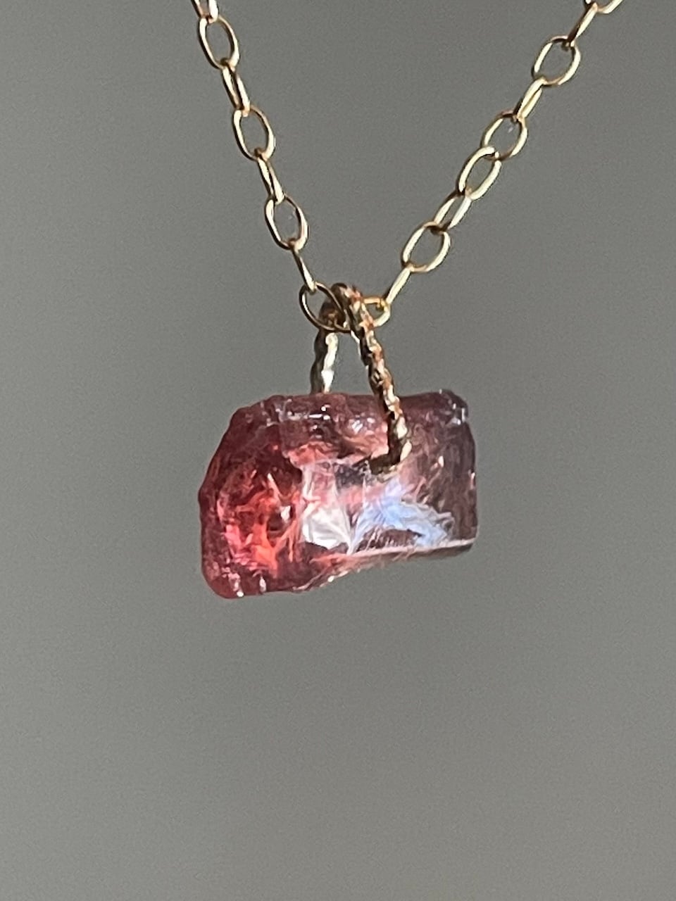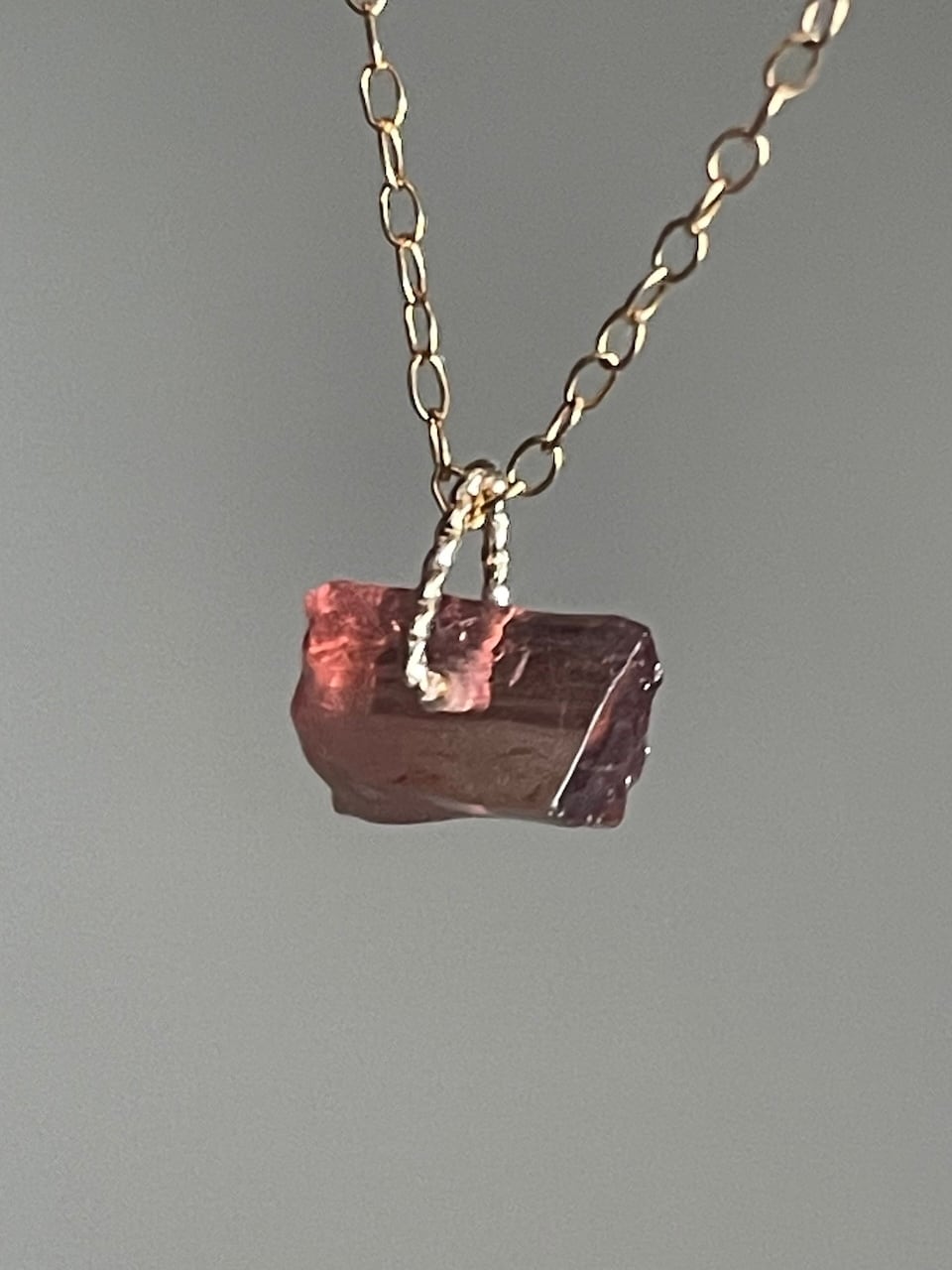 淡く透き通りながら、深く落ち着いたレッドピンクが印象的な、ピンクトルマリンの原石をチャームにしました。芯のある輝きは、優しさと強さがひとつになった光のよう。