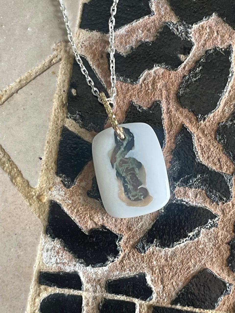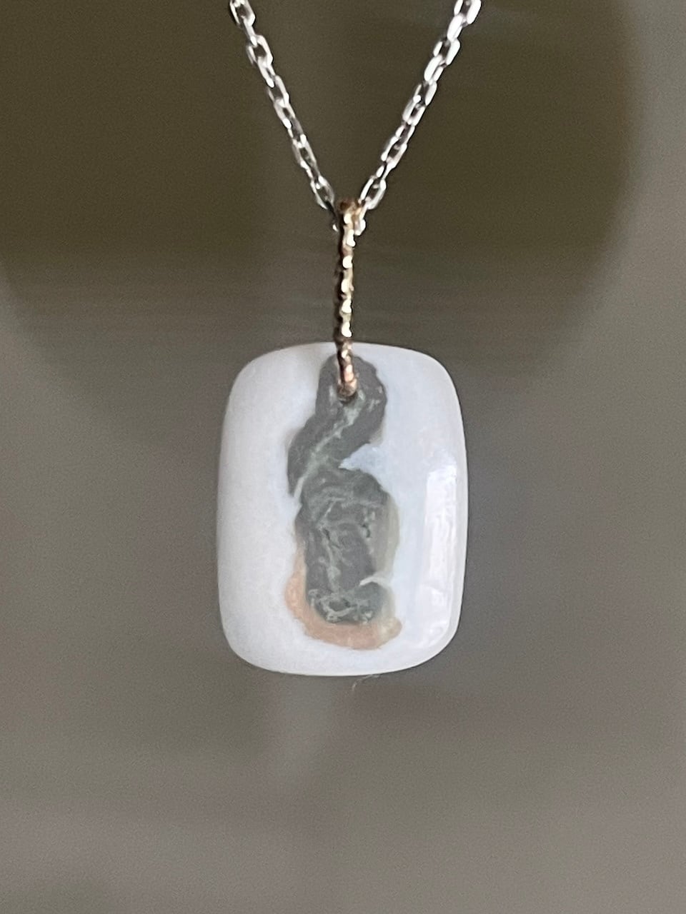 中心に広がるグリーングレーの結晶は、雲の切れ間からのぞく宇宙のようで、静かな輝きを放ちながら、見るたびに違う表情を見せてくれます。清らかで神秘的な佇まいが、心に穏やかな静寂をもたらす一粒です。