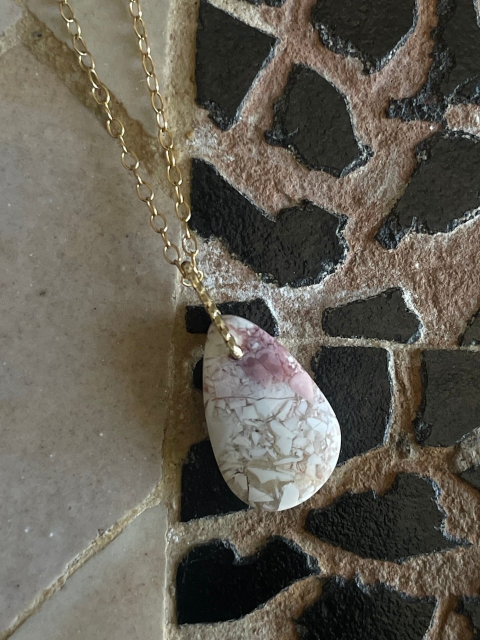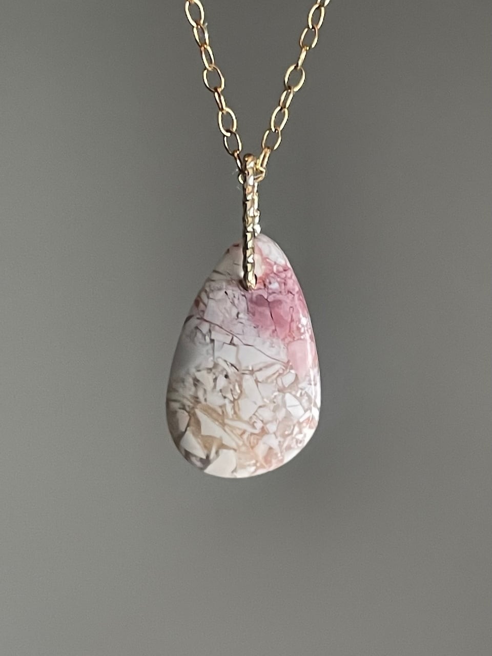 やわらかな桜色とアイボリーが溶け合う、ヒヤシンスジャスパーのルースチャーム。