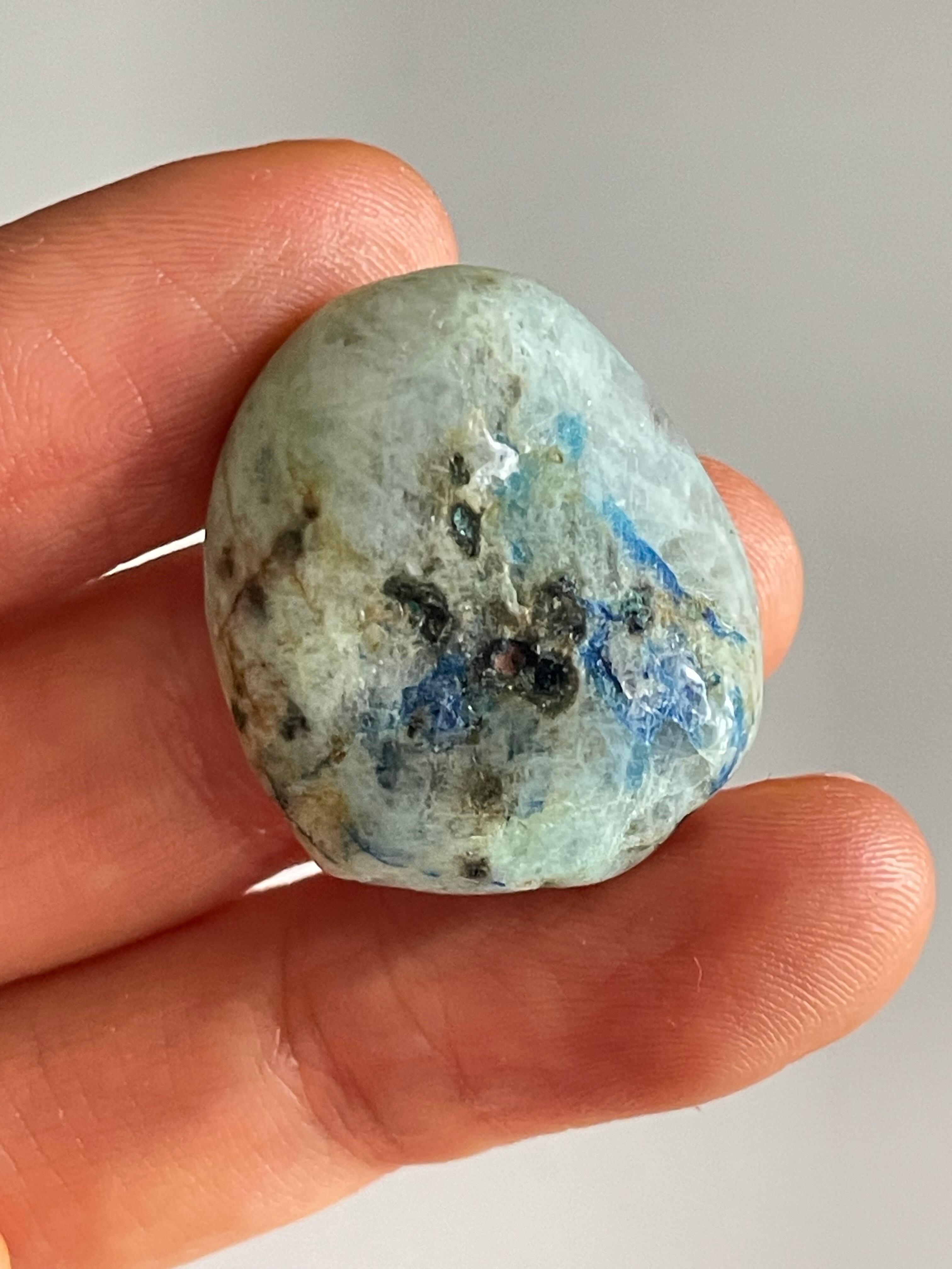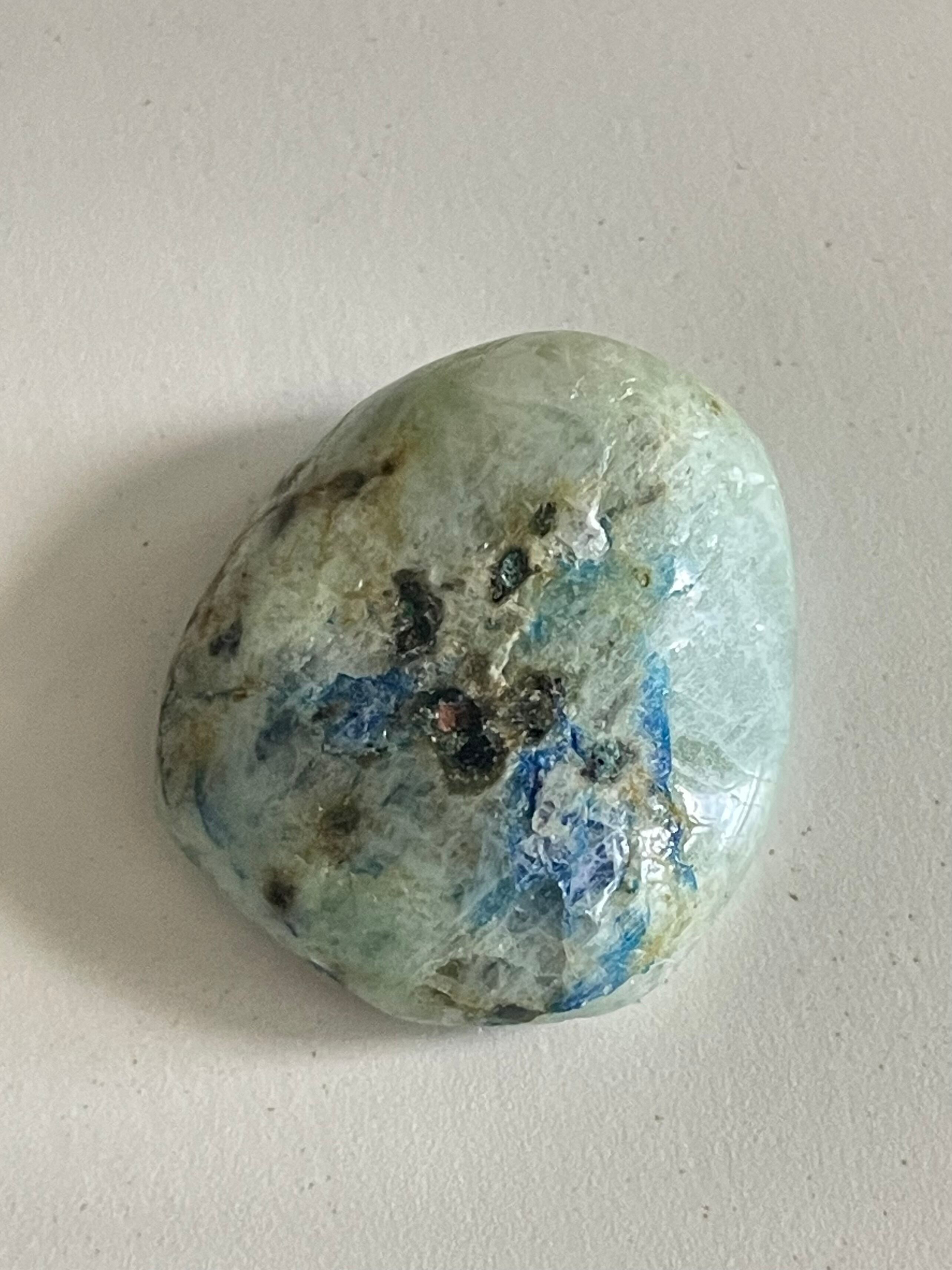アズライトは「洞察と直感の石」、ムーンストーンは「感情と受容の石」。