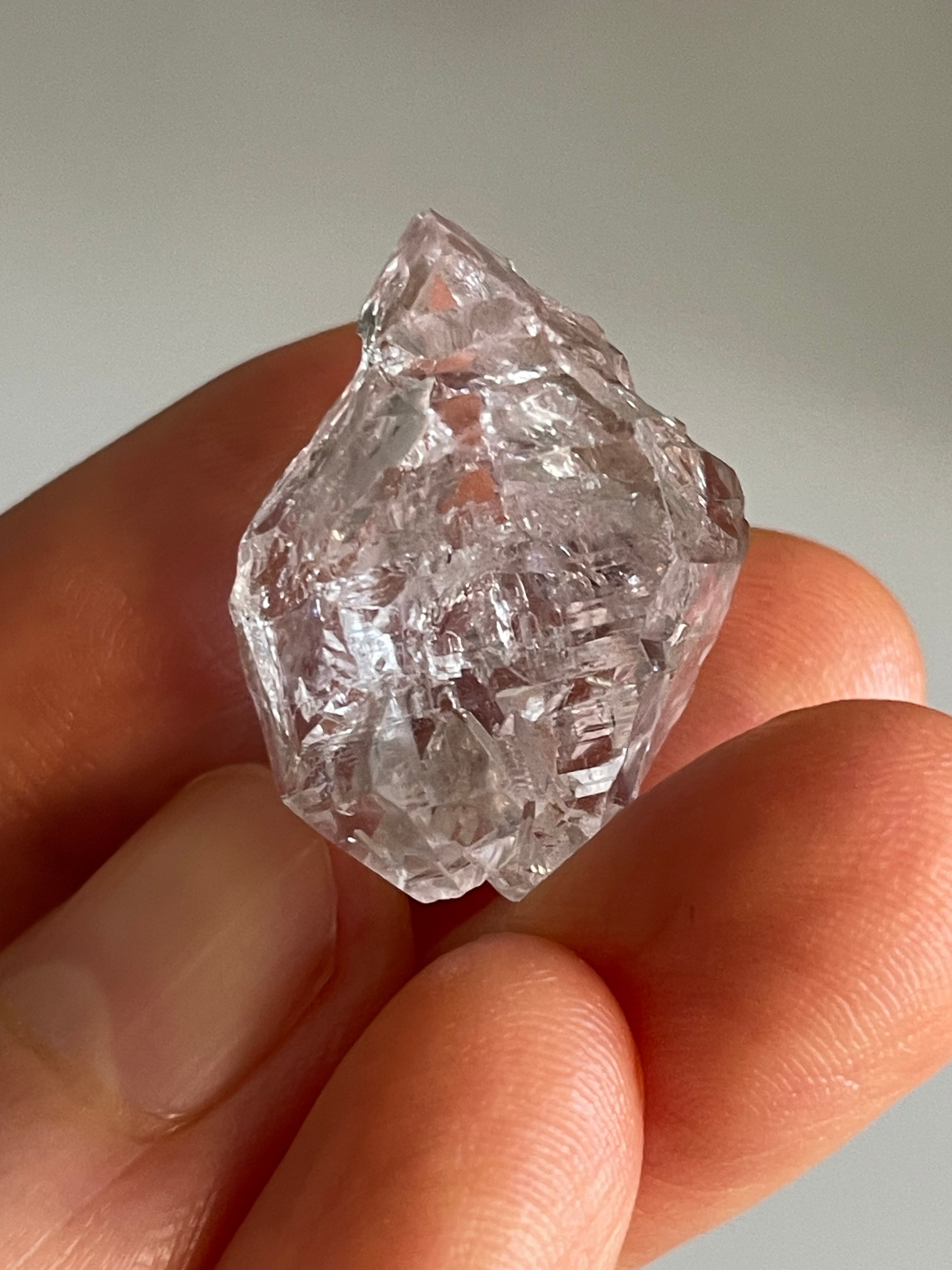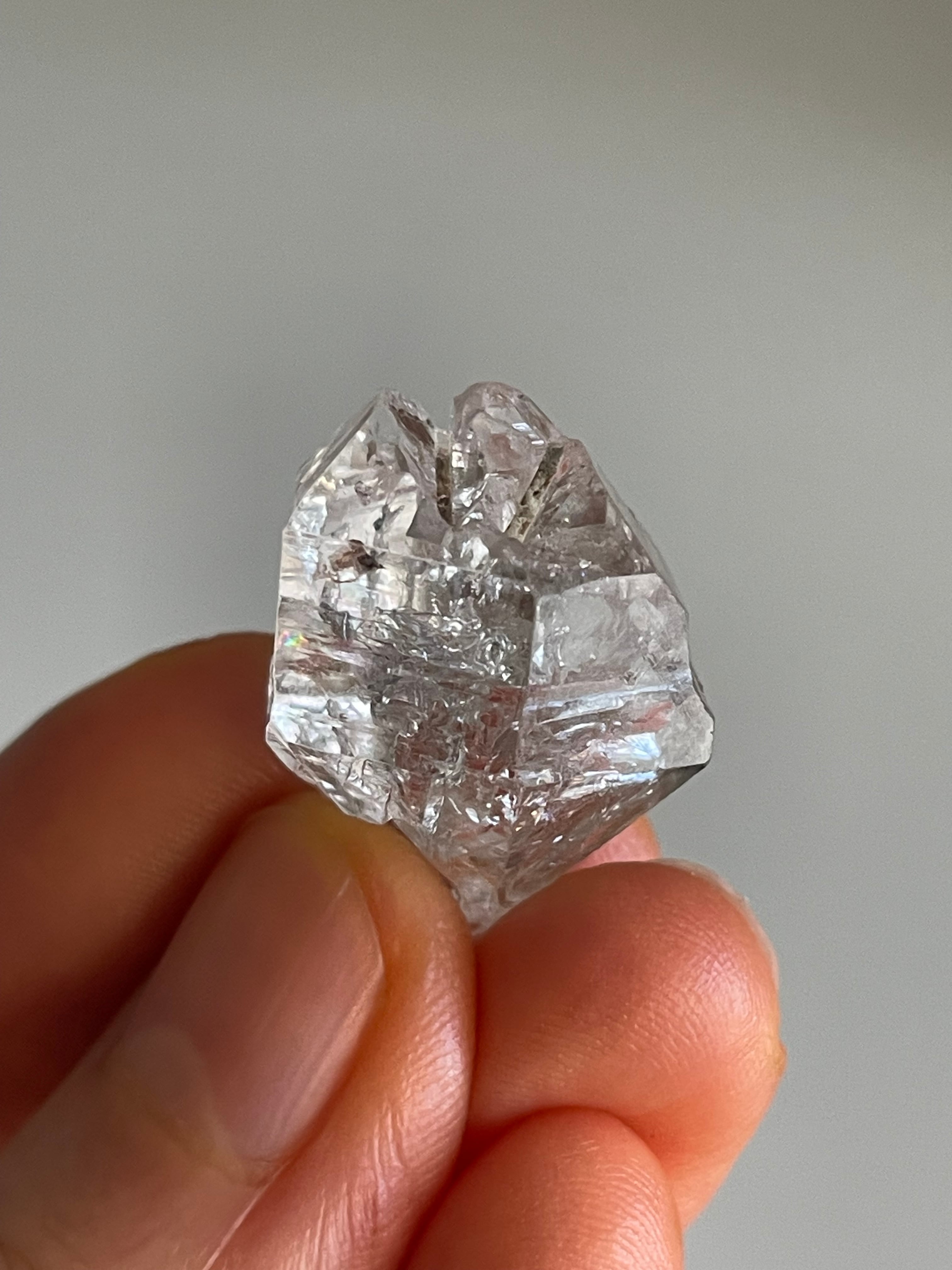 ヒマラヤンダイヤモンドクォーツは、ヒマラヤ山脈の標高の高い地層から採掘される、非常に高波動のクリアクォーツ。透明度と光の屈折が「ダイヤモンド」の名を与えられるほどの純粋さを持ち、内部に現れる虹のプリズムは“光そのものの記憶”と呼ばれます。