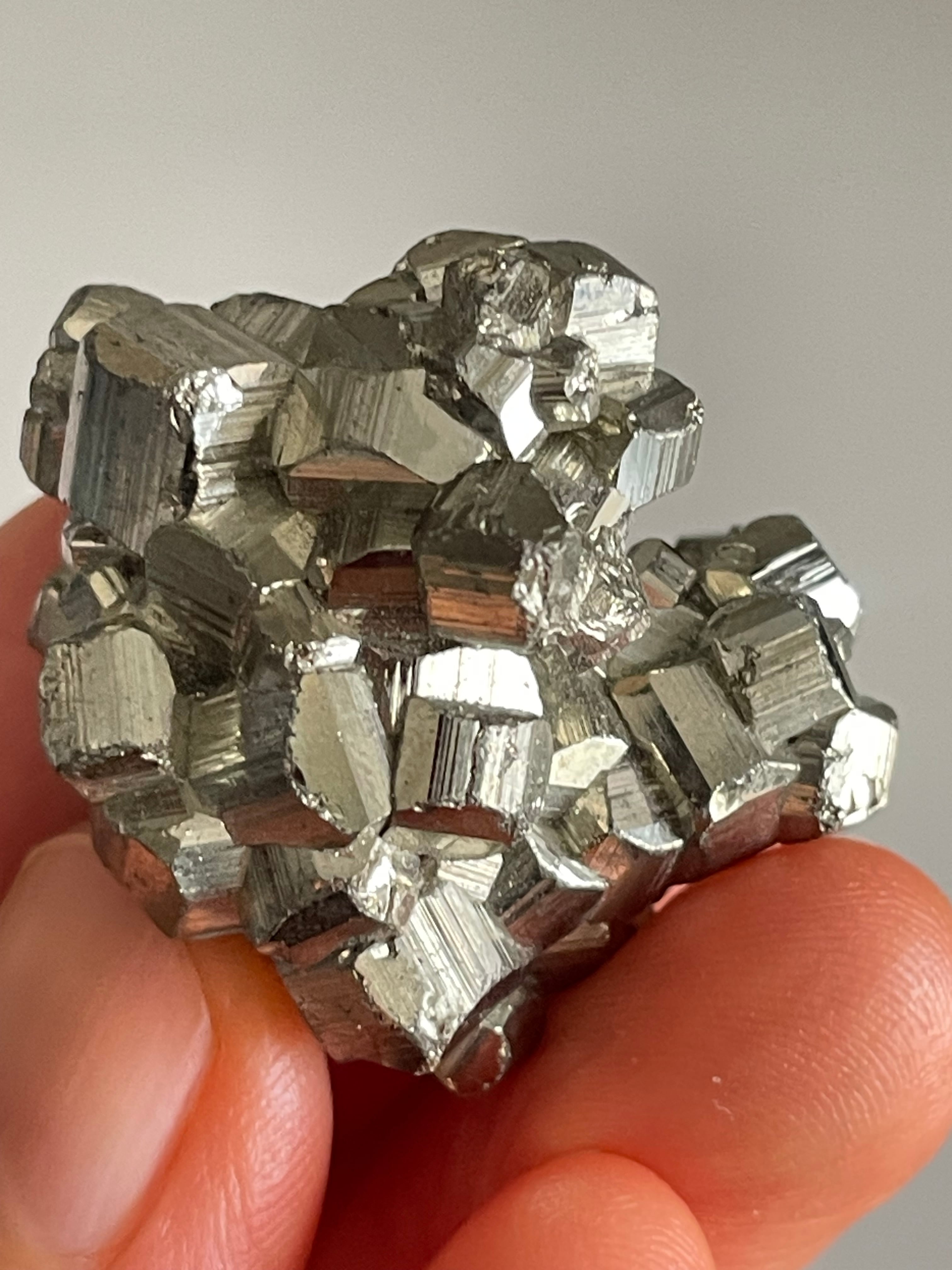 ラテン語の “pyr(火)” に由来し、古代では火打石として使われてきたこの鉱物は、大地の深部で育まれた“輝く現実化の結晶”です。