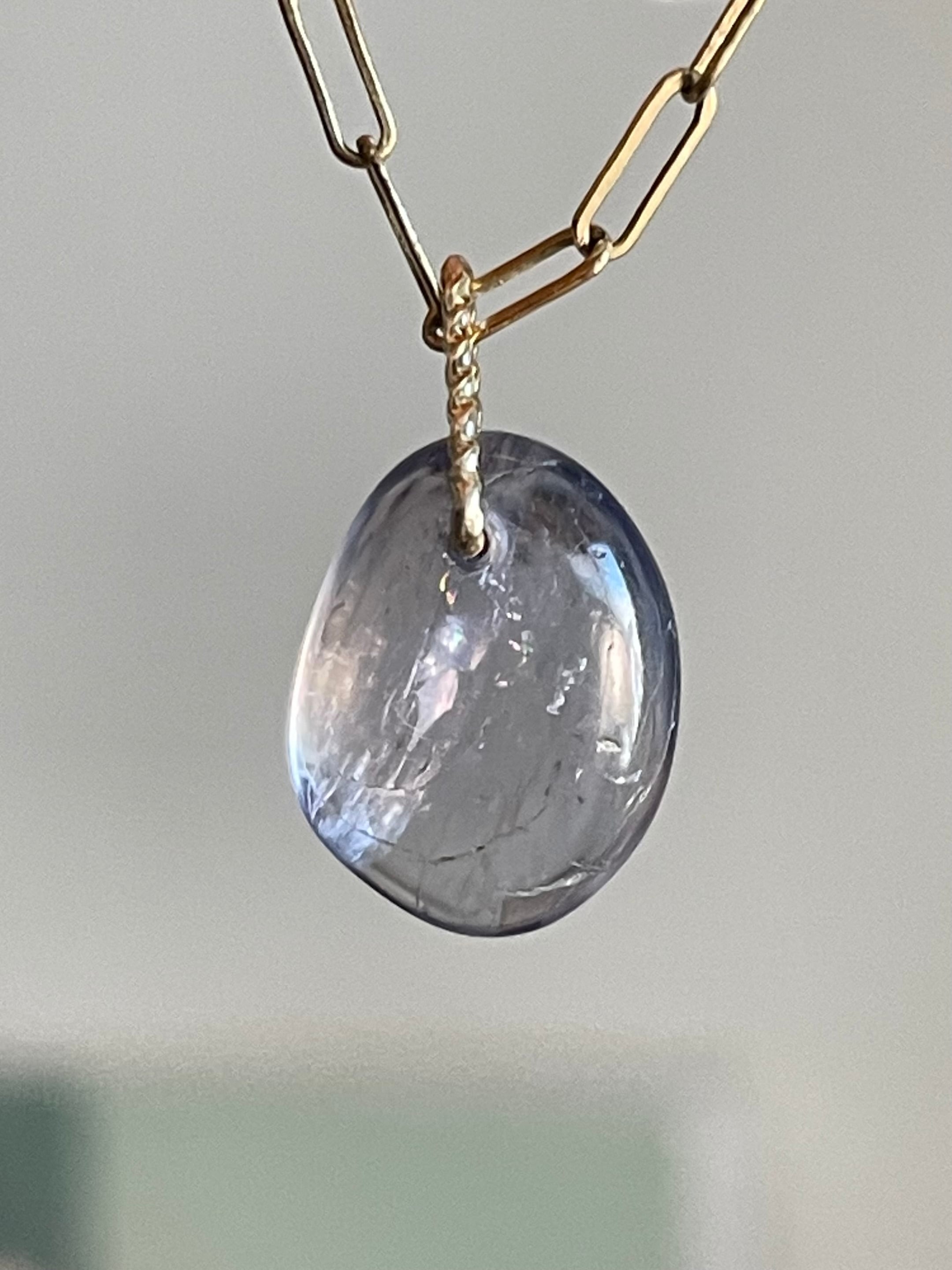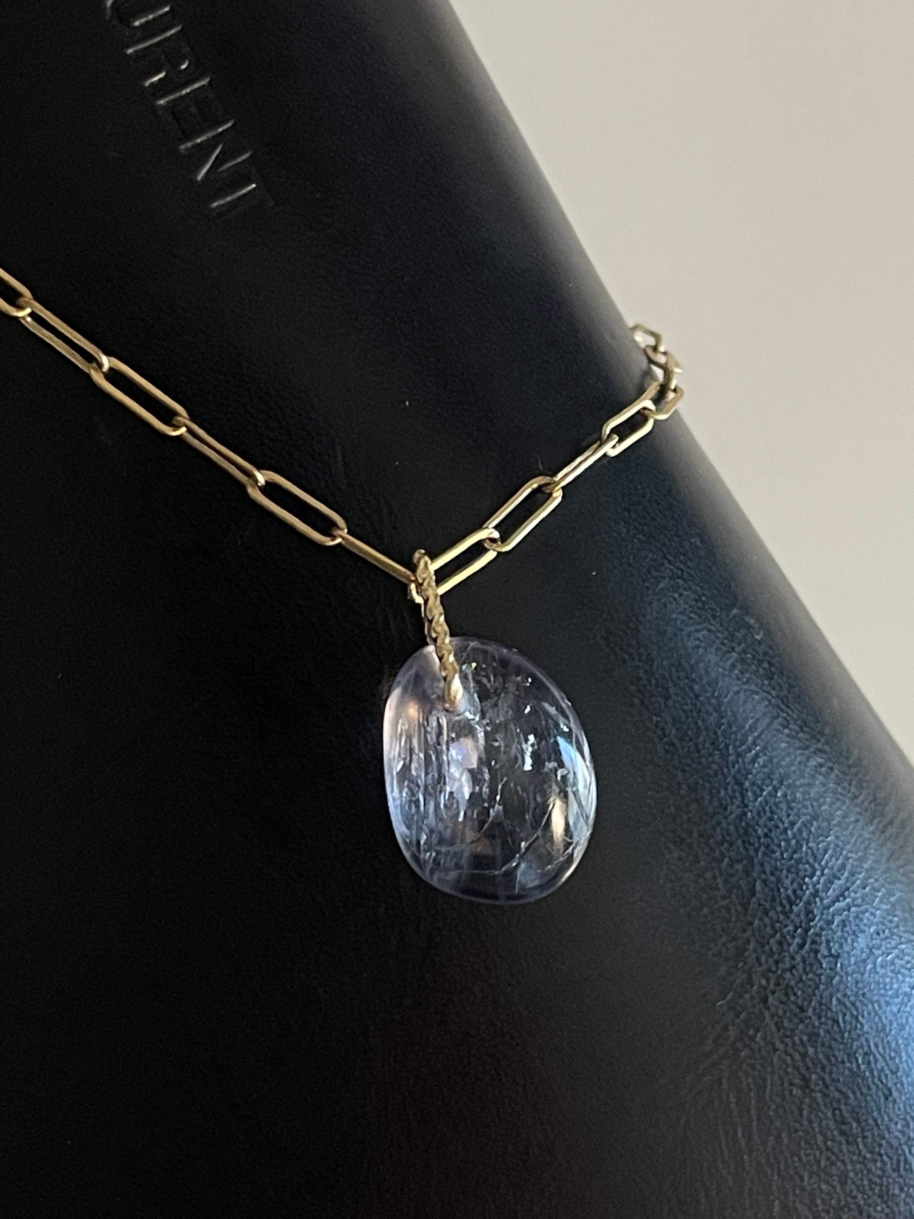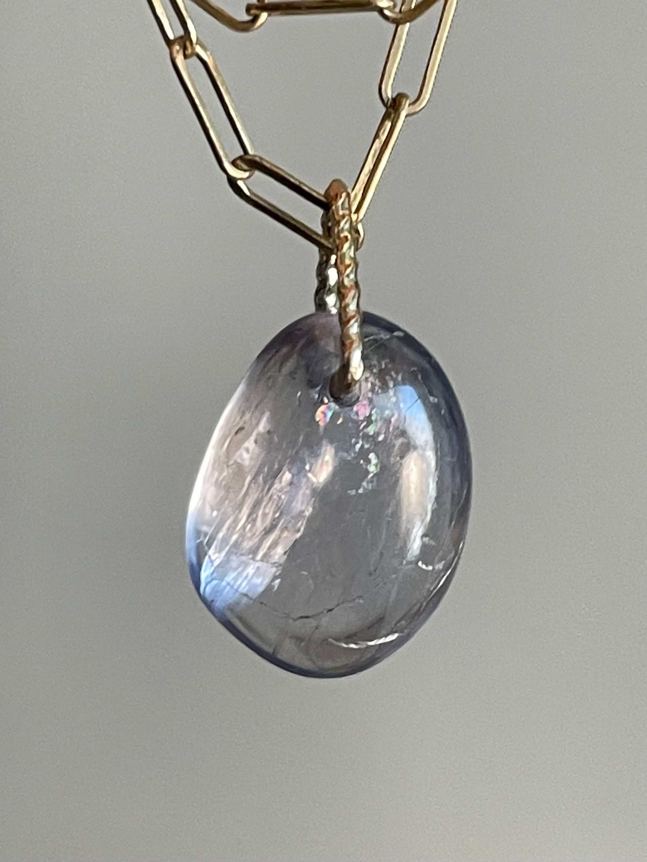 静かな湖面のように光を溶かし込む、カイヤナイトのペンダントチャーム。