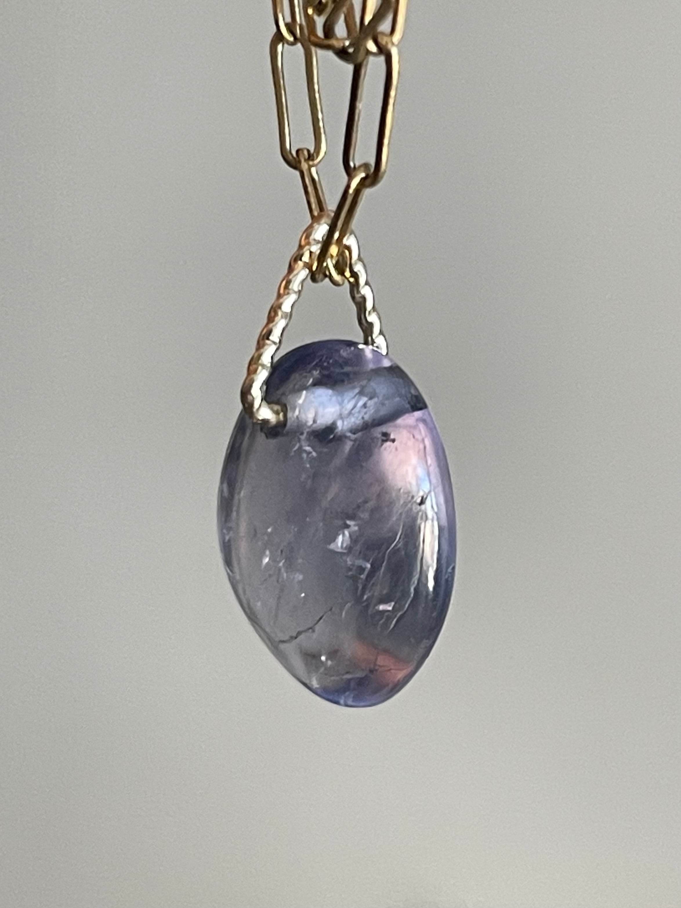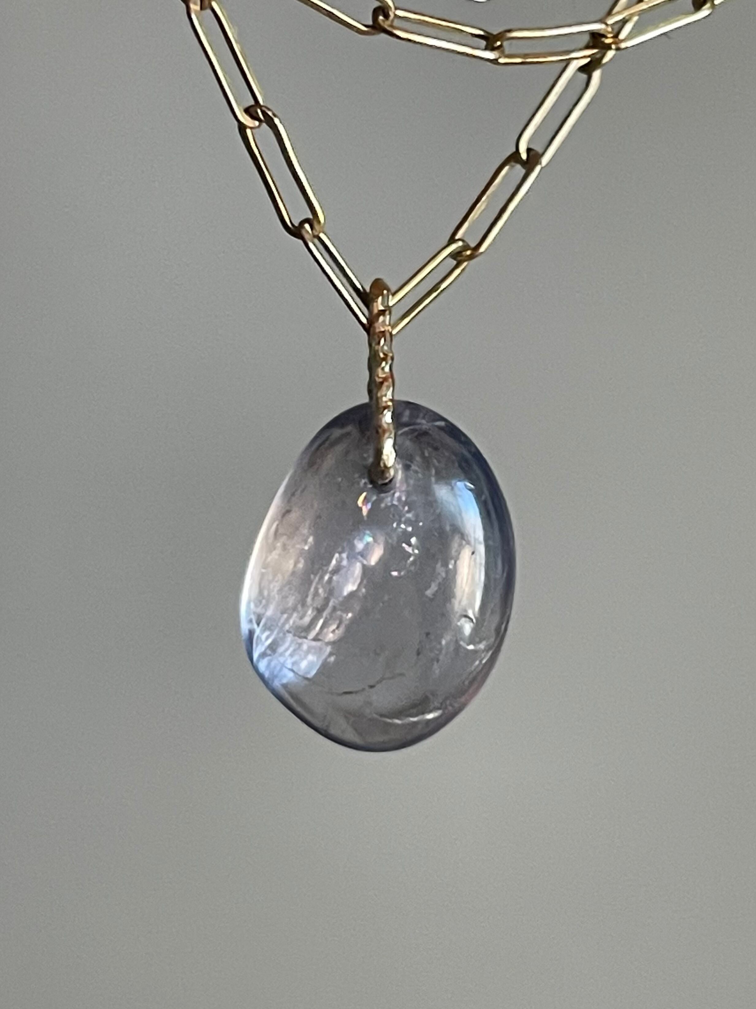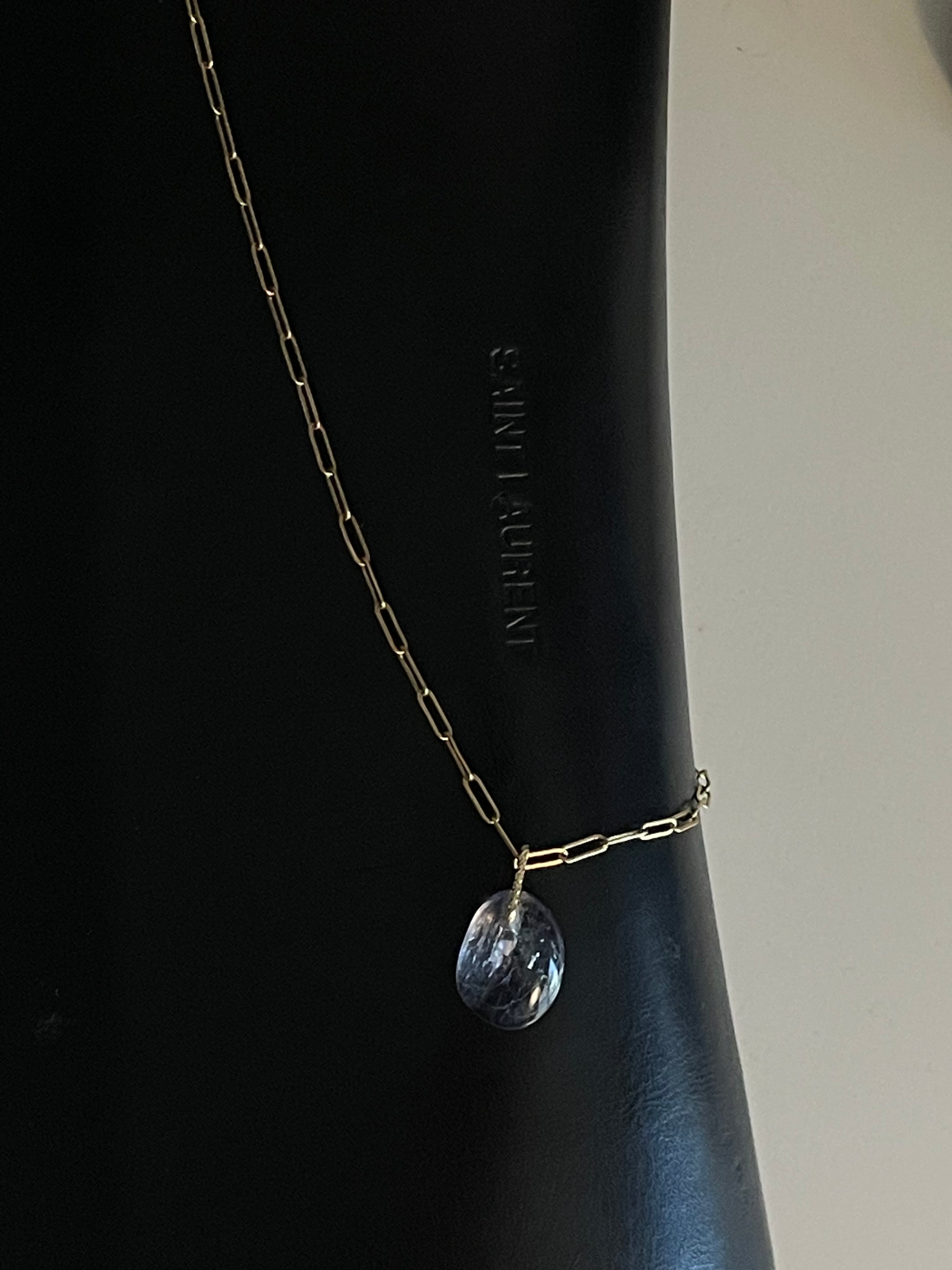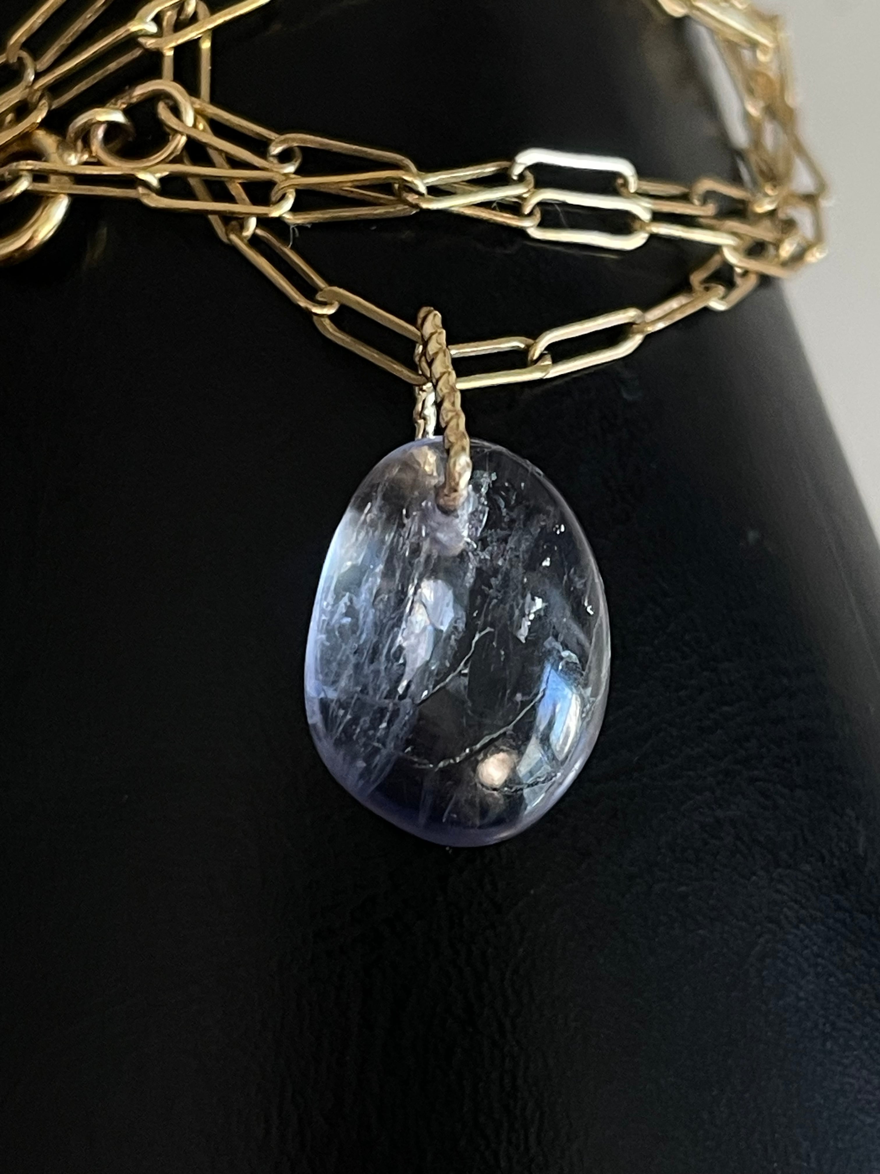 静かな湖面のように光を溶かし込む、カイヤナイトのペンダントチャーム。