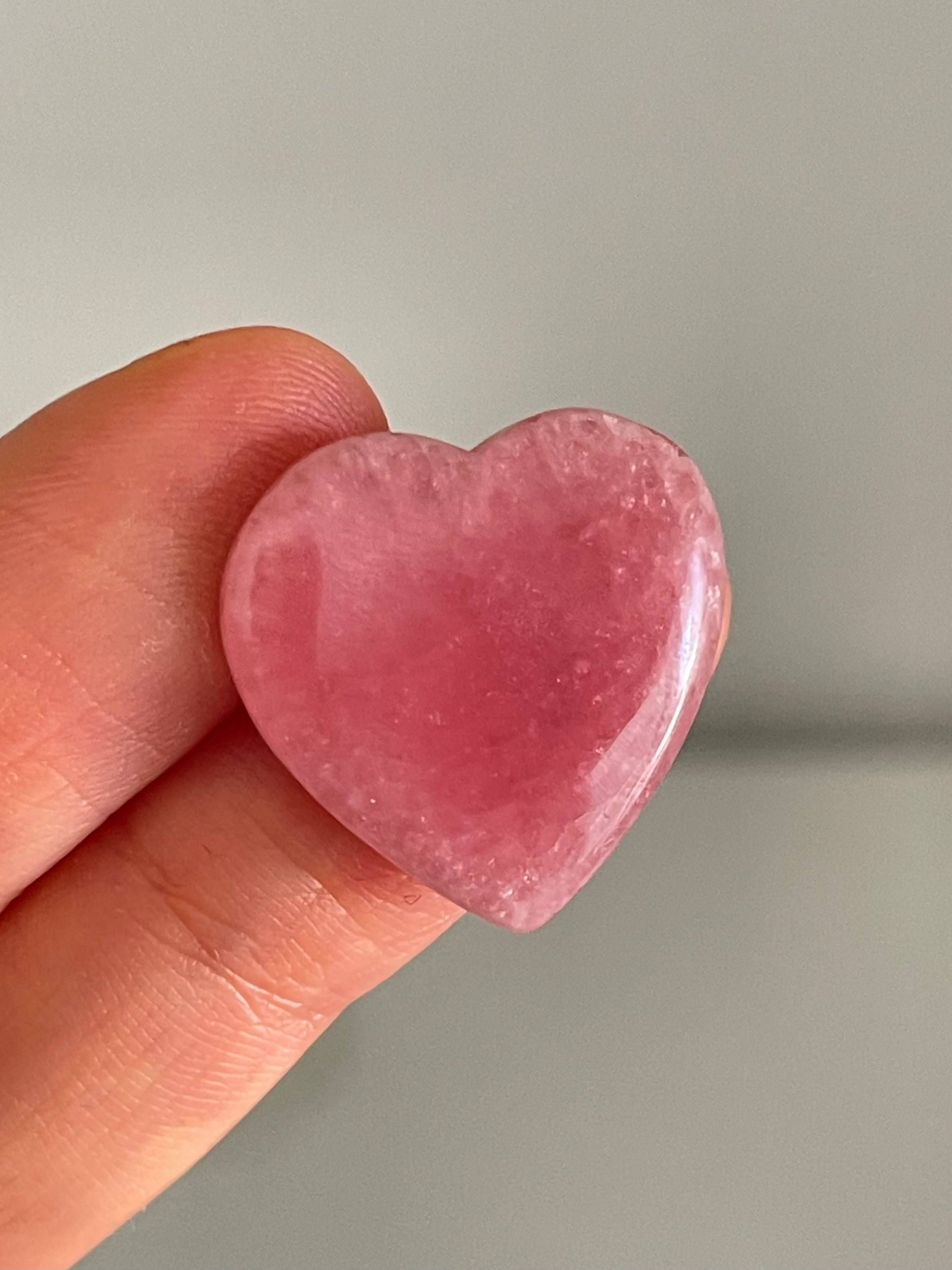 潤いたっぷりに艶めくハート型のロードクロサイト。愛を象徴するクリスタルにぴったりのフォルムです。