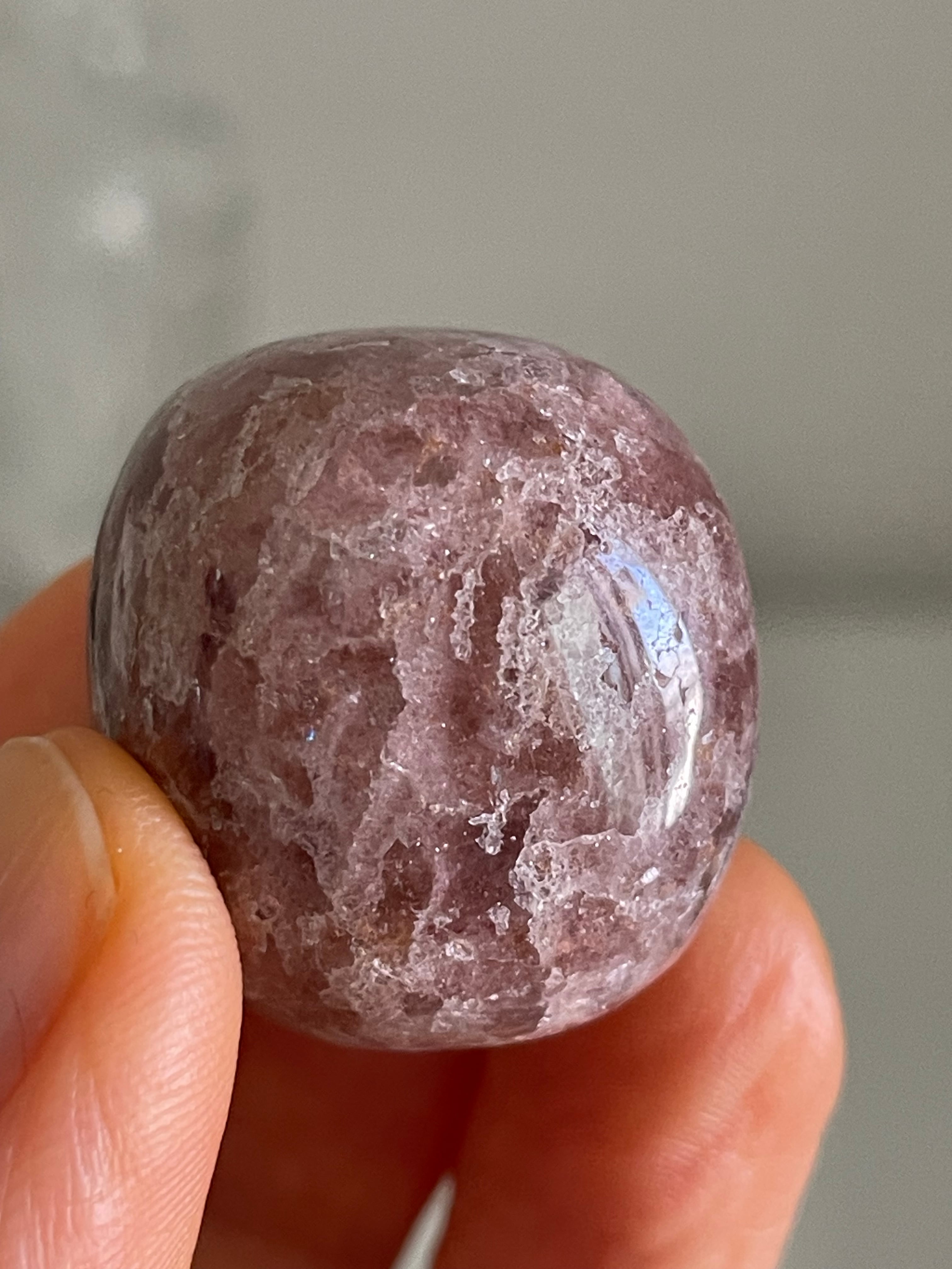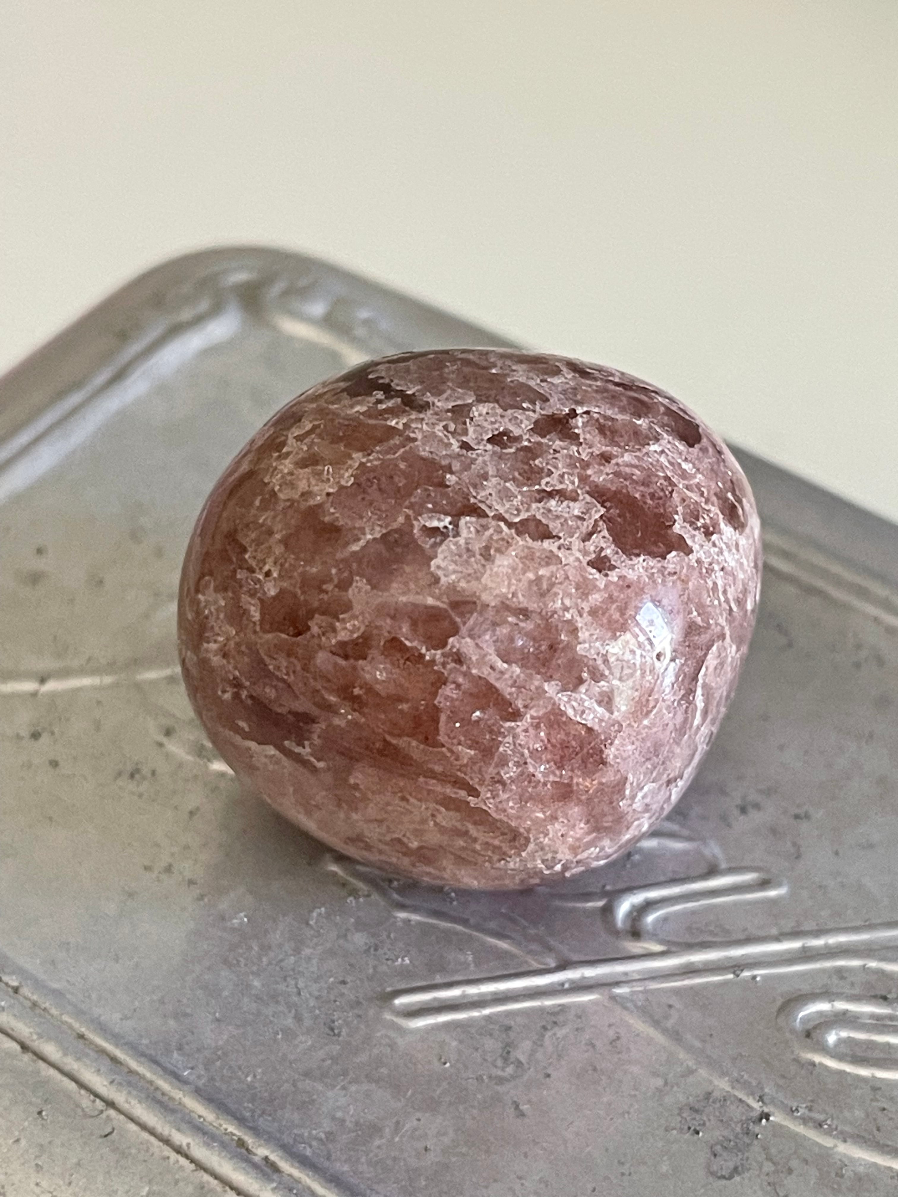 シルバーラメのような輝きが美しい、ストロベリークォーツのタンブル。