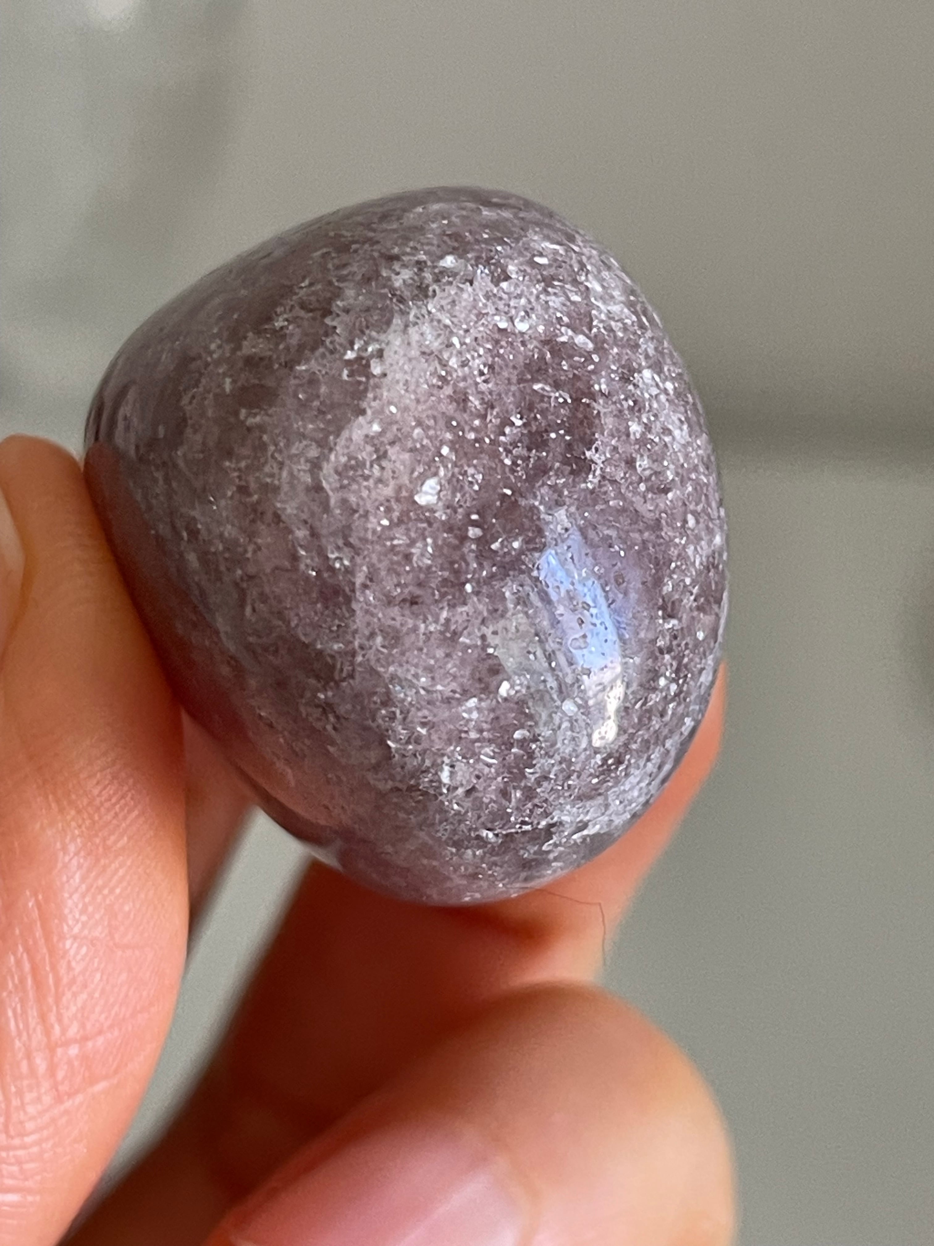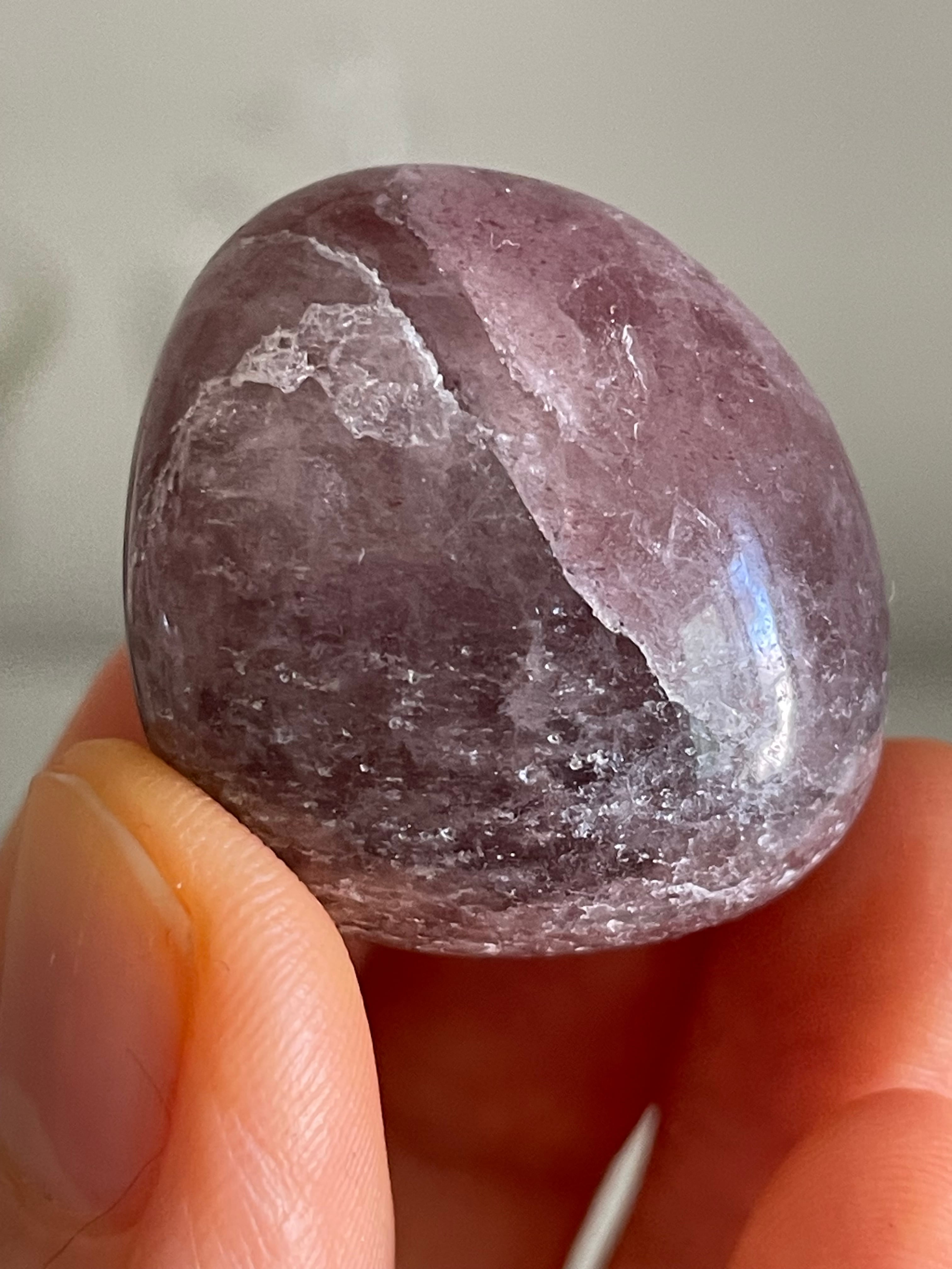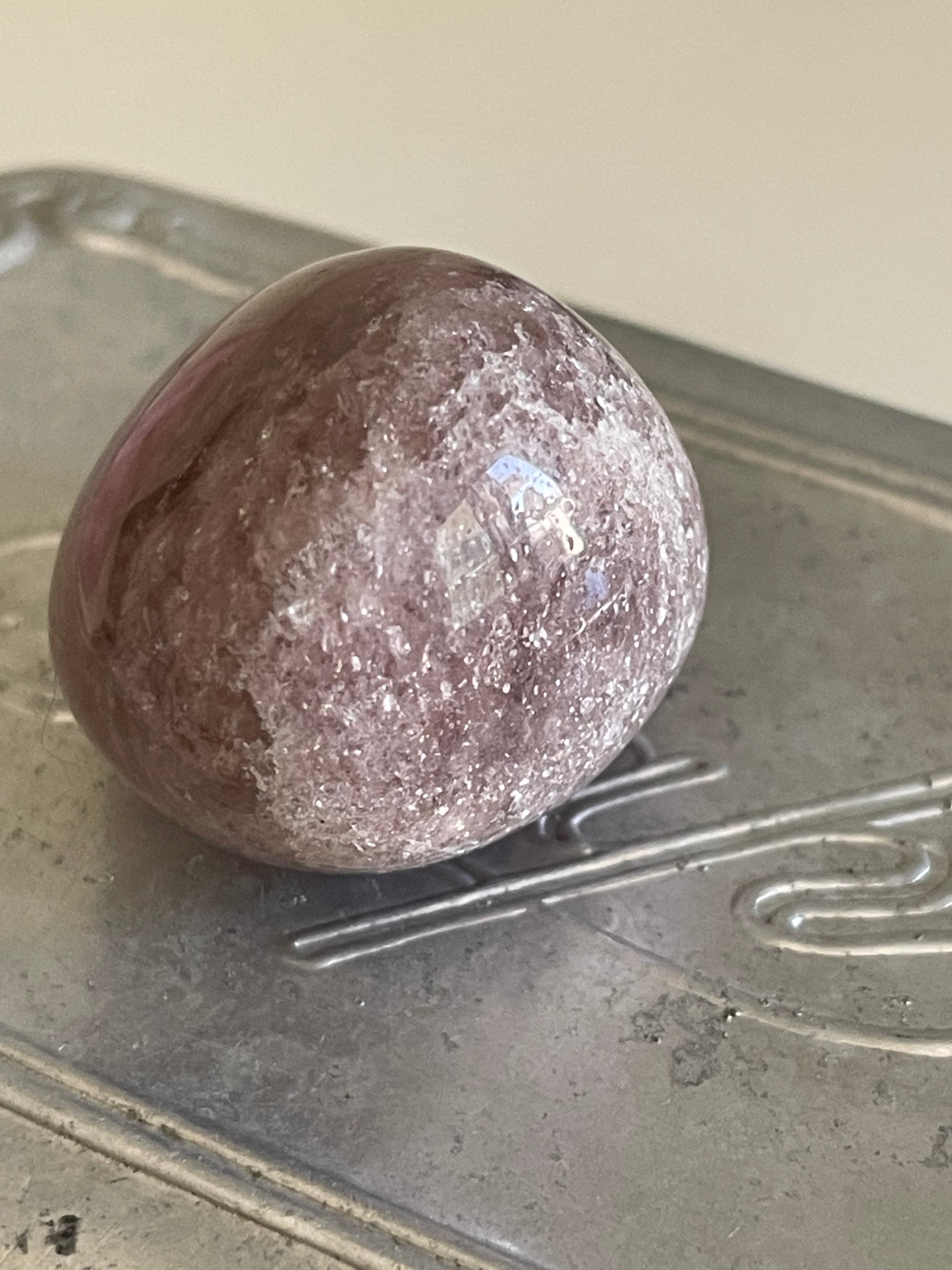 シルバーラメのような輝きが美しい、ストロベリークォーツのタンブル。