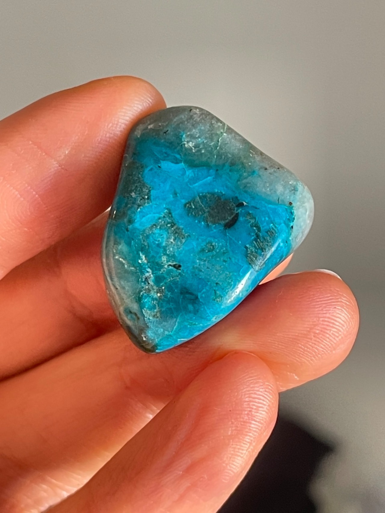 クリソコラは“海の青”を宿すと語られる石。名は古代ギリシア語の「金+膠」に由来し、古典では金細工に用いる物質名でもありました。アリゾナやアンデスの作家に愛され、イスラエルではマラカイト等と交じる“エイラート・ストーン”としても親しまれます。伝承では心を静め、やわらかな対話を促す石とされます。