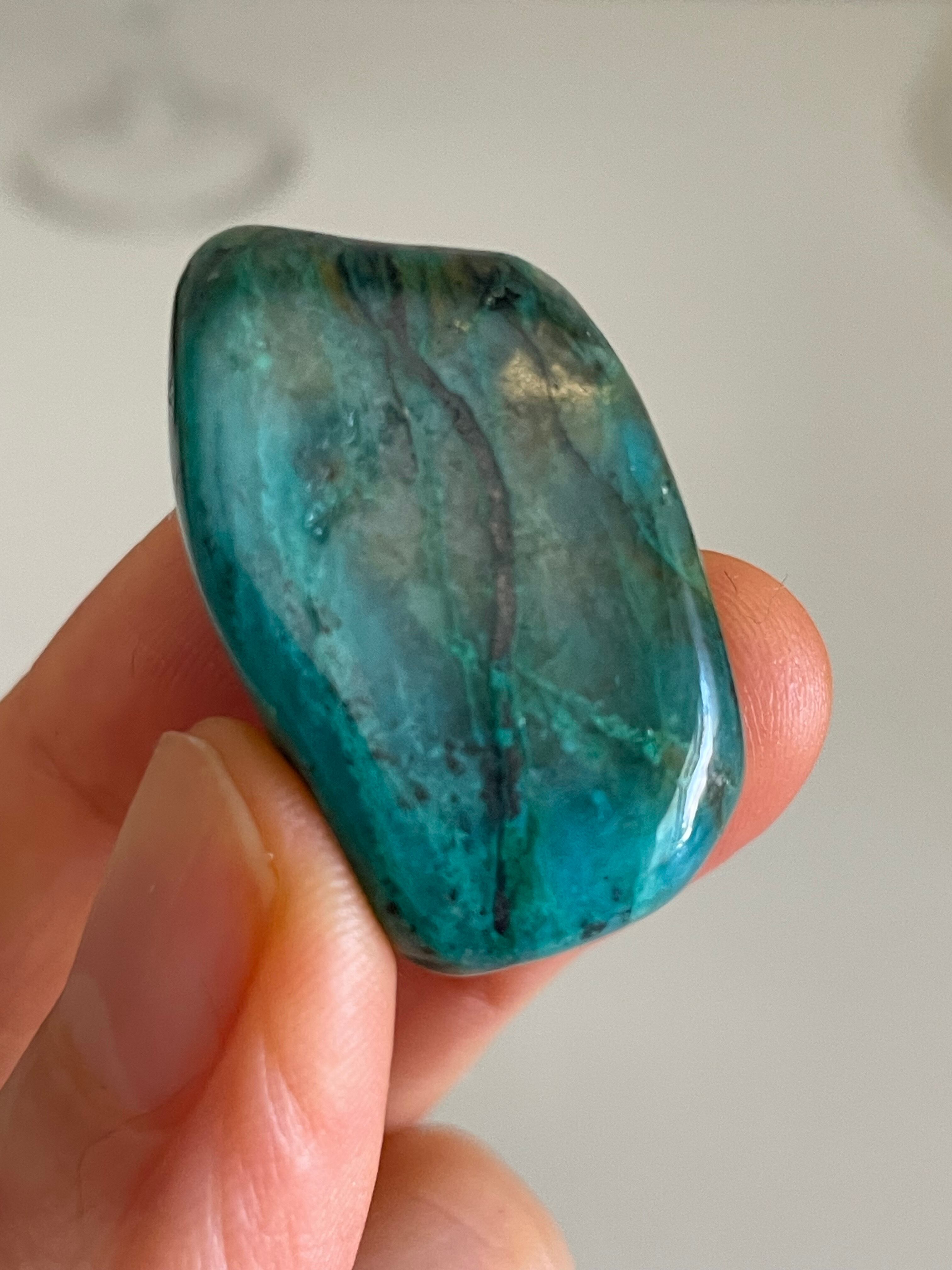 クリソコラは“海の青”を宿すと語られる石。名は古代ギリシア語の「金+膠」に由来し、古典では金細工に用いる物質名でもありました。アリゾナやアンデスの作家に愛され、イスラエルではマラカイト等と交じる“エイラート・ストーン”としても親しまれます。伝承では心を静め、やわらかな対話を促す石とされます。