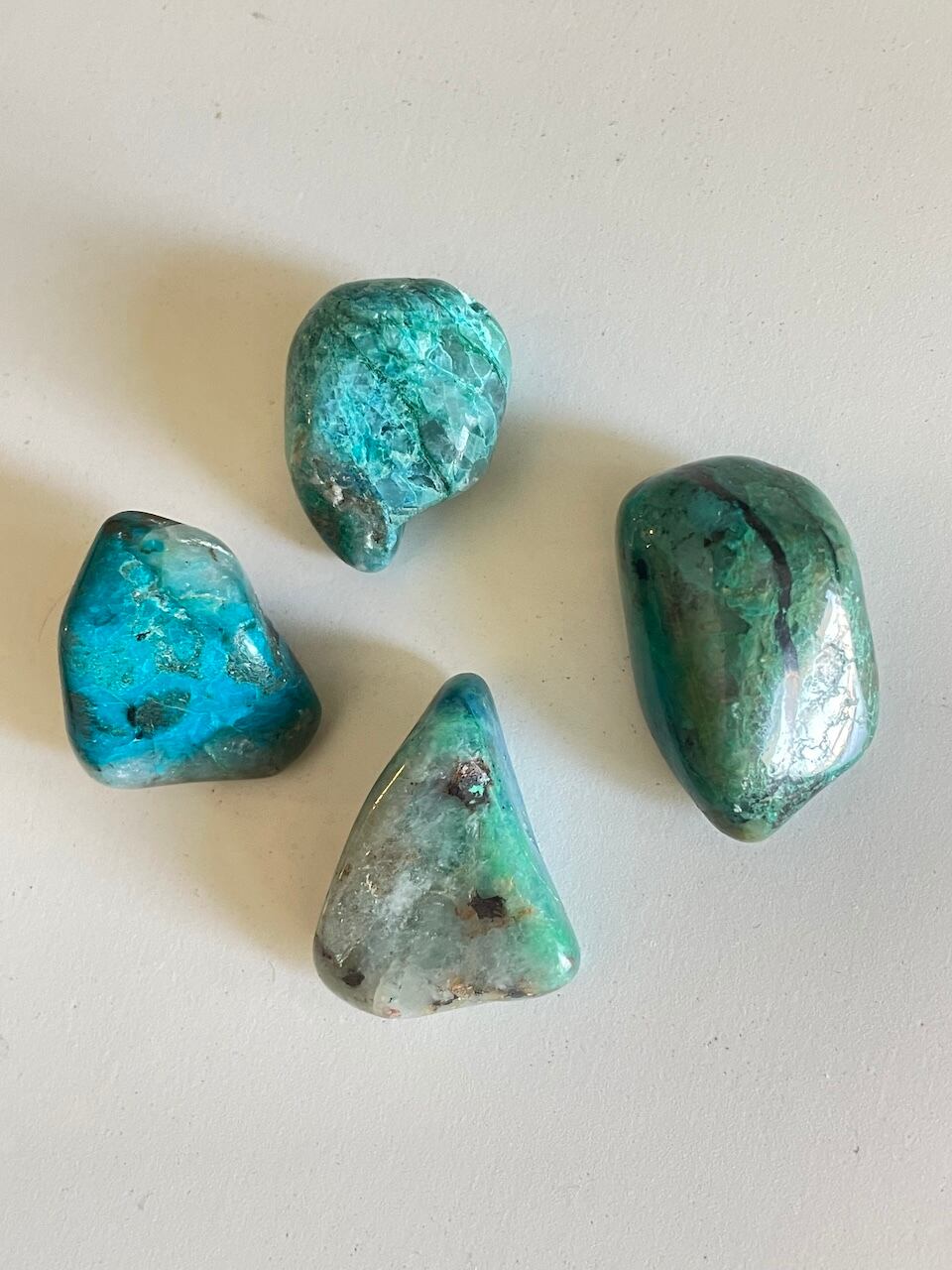 水のバランスが乱れると、「感情が乾く/溜めこむ」「関係のしがらみで硬直」といったサインが出ます。クリソコラは胸の奥に静かな水面をつくり、こわばった情緒をほどいて受容と落ち着きを回復するサポートに。