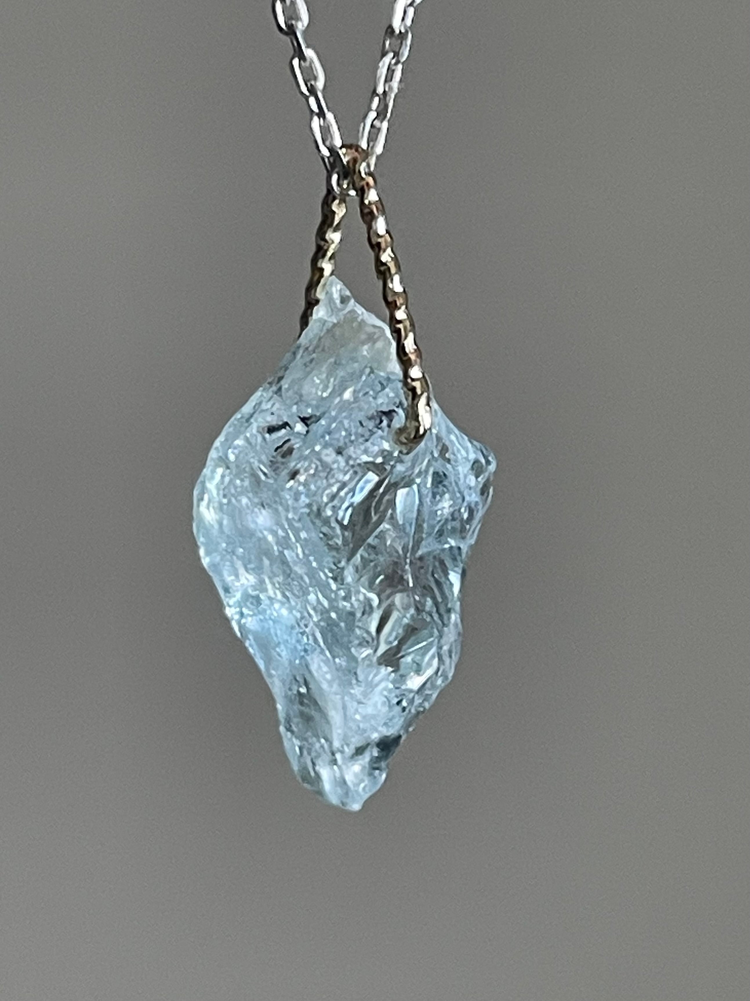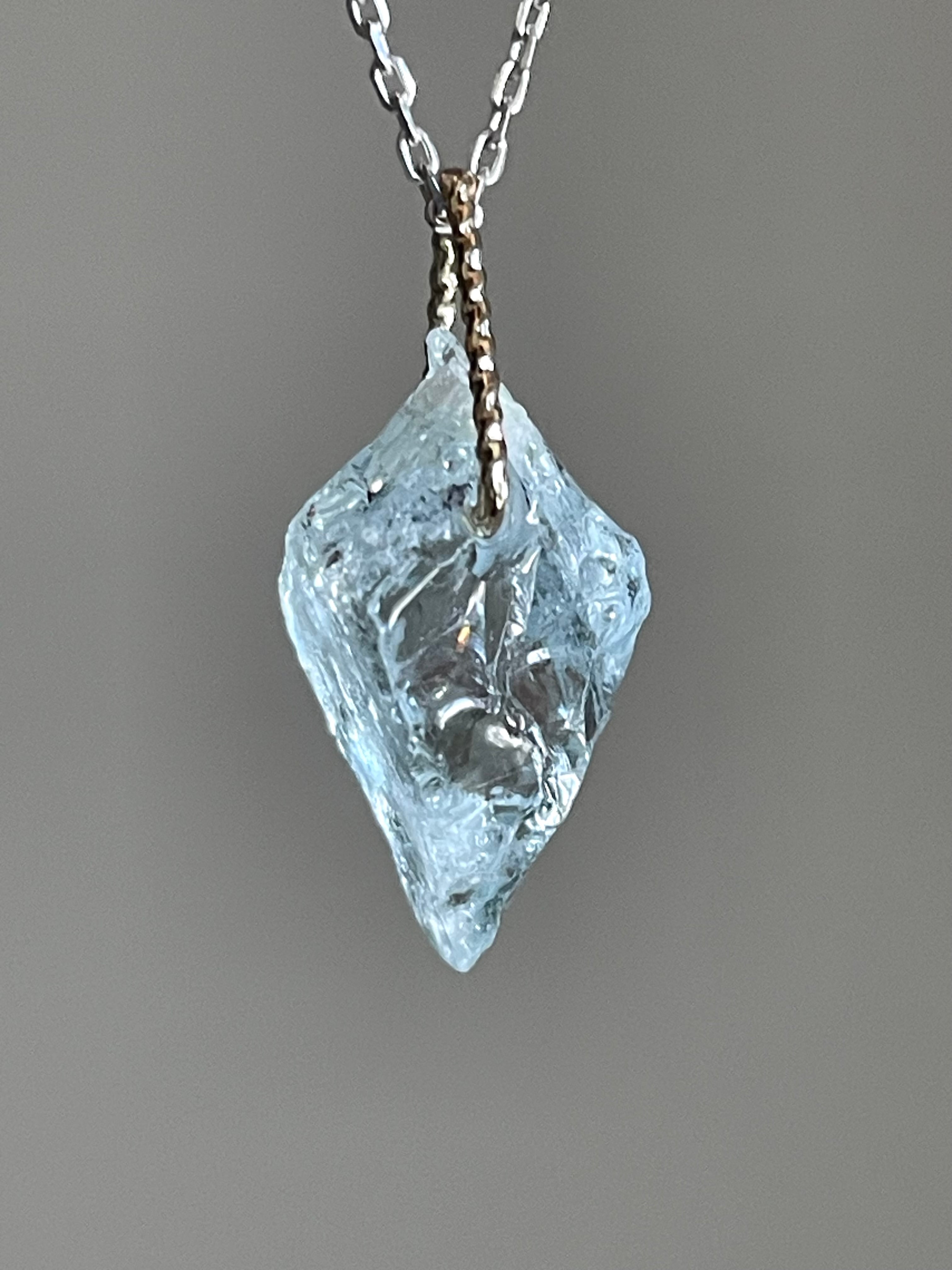 淡いミストブルーの光が、ひとしずくの彫刻になったようなアクアマリンのチャーム。