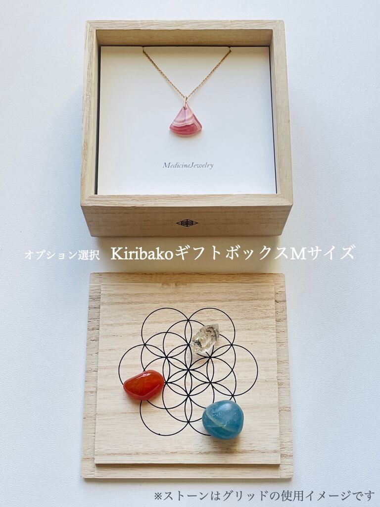 クリスタルグリッド付きのオリジナルキリバコをギフトボックスにアレンジしてお届けします。