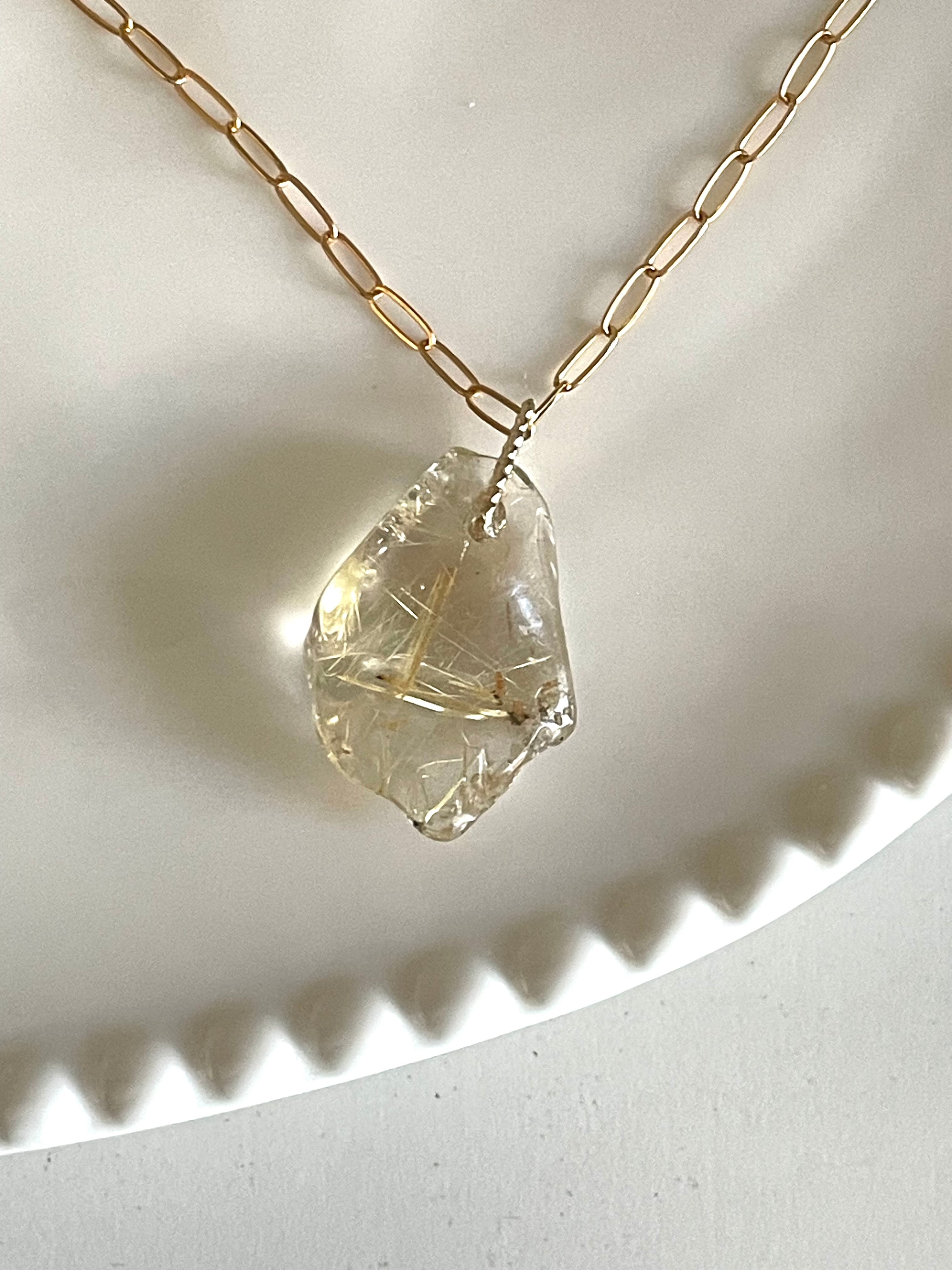 クリアなクォーツの中に、金の糸が無数に走るルチルクォーツ。