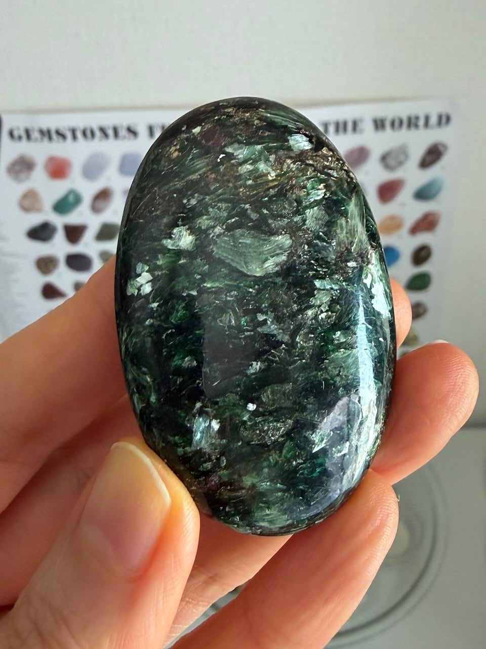 フッサイトに含まれる雲母(マイカ)による繊細な輝きが美しく、特に深みのあるグリーンとルビーの発色が調和したルビー・イン・フッサイトはツーソンでも流通が限られた希少な品質。主な産地はインドで、このような質感と色彩を兼ね備えたものは、出会い自体が特別なものです。