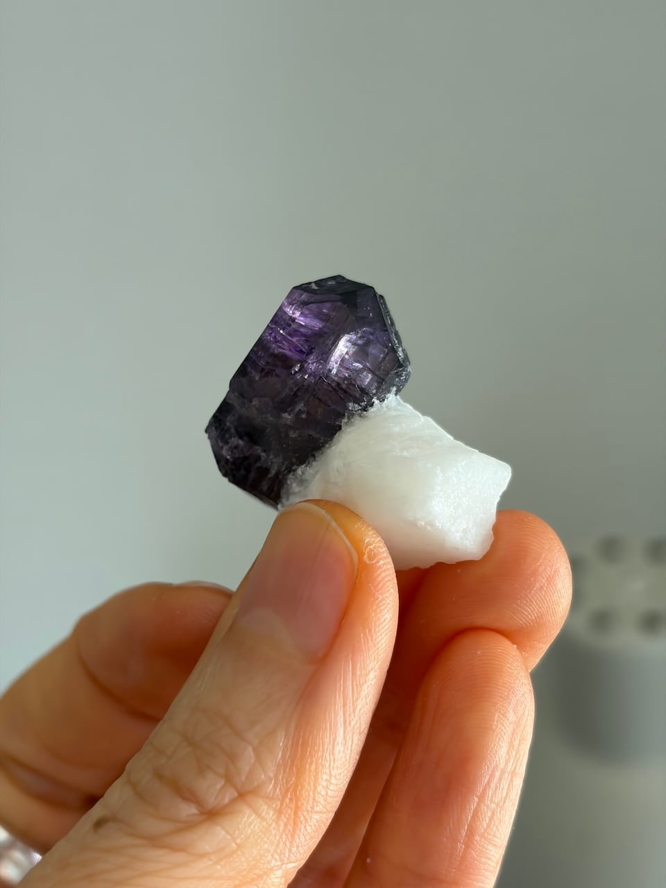 深みのある神聖なパープル、凛とした気配、結晶のエッジが生み出すシャープな光の反射が、神秘的な美しさを際立たせています。
