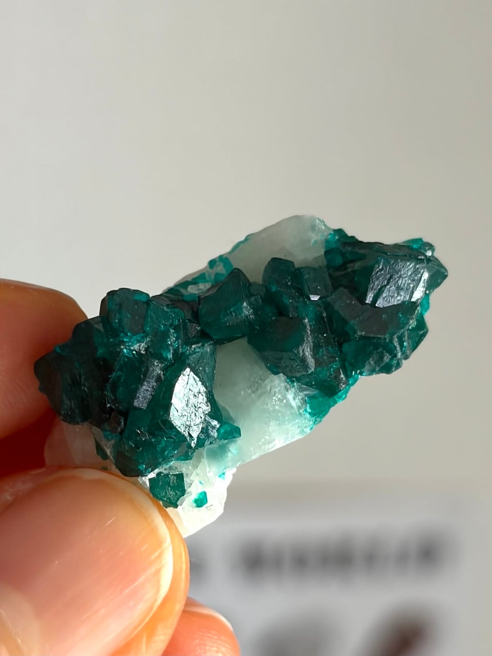 濃密なエメラルドグリーンのキューブ状の結晶が見事なダイオプテーズ。