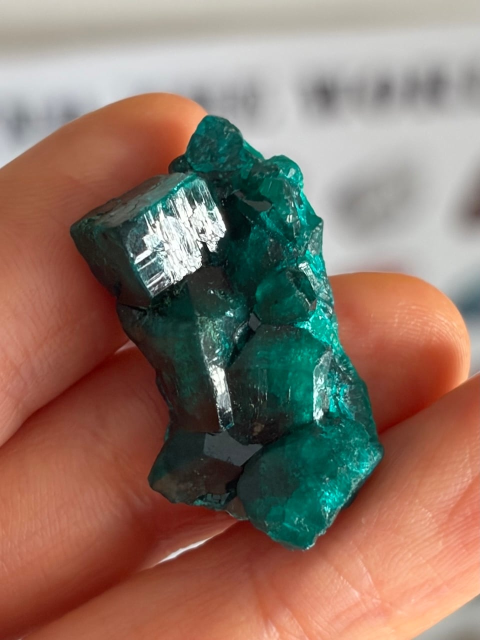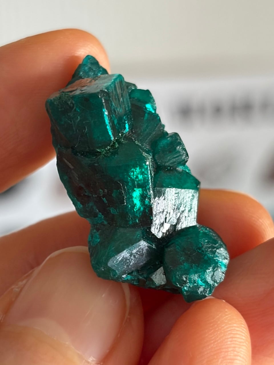濃密なエメラルドグリーンのキューブ状の結晶が見事なダイオプテーズ。