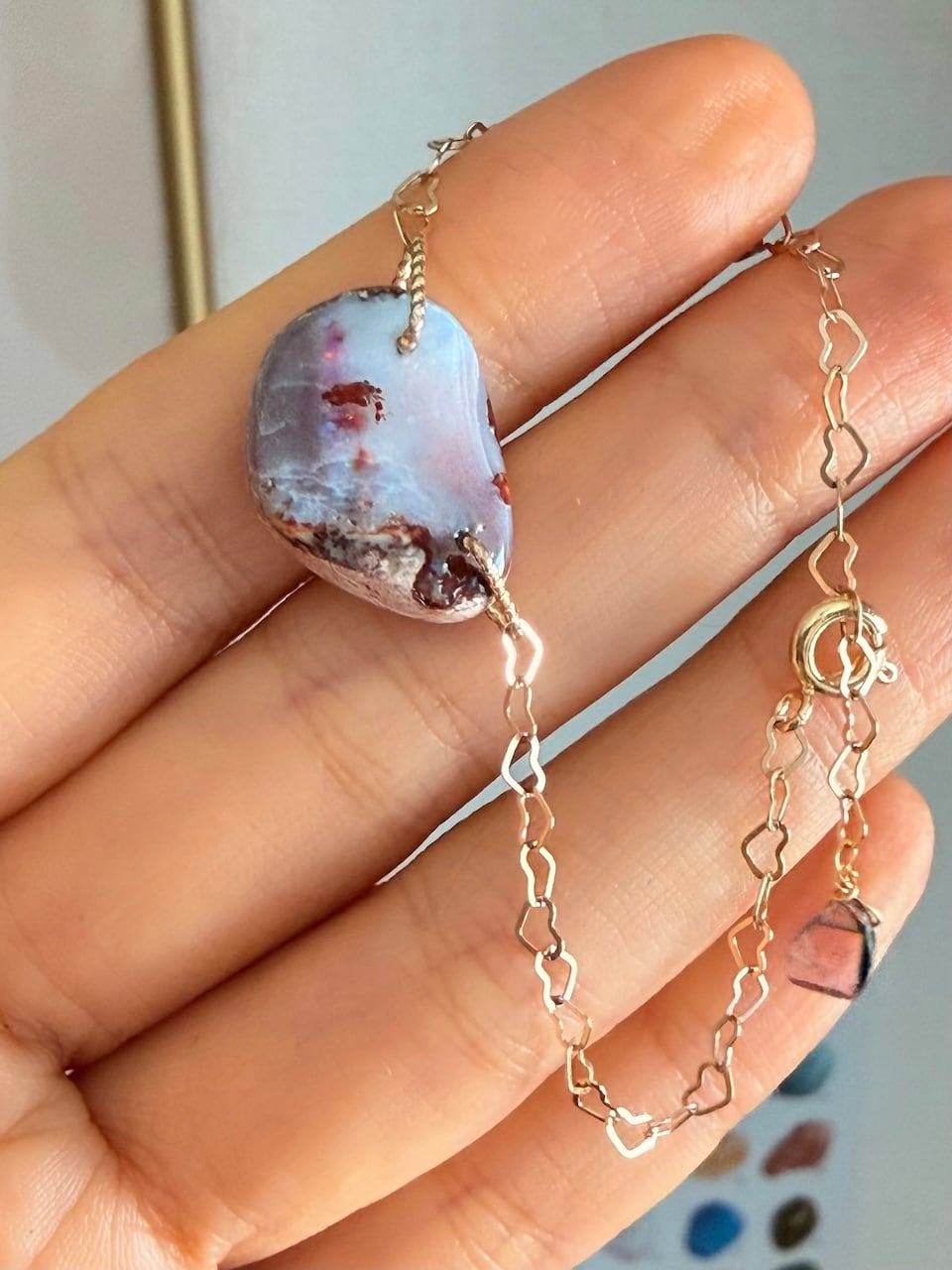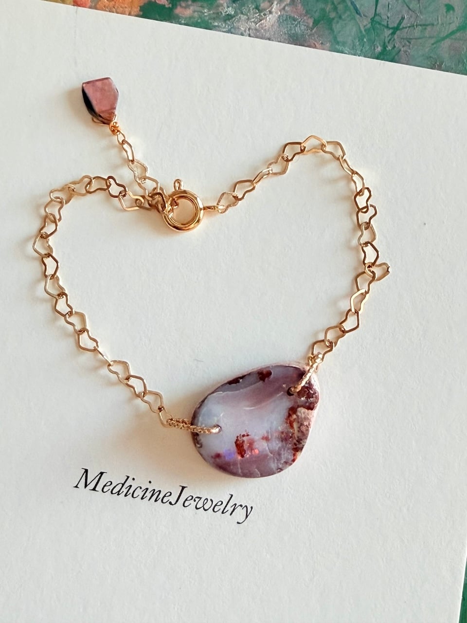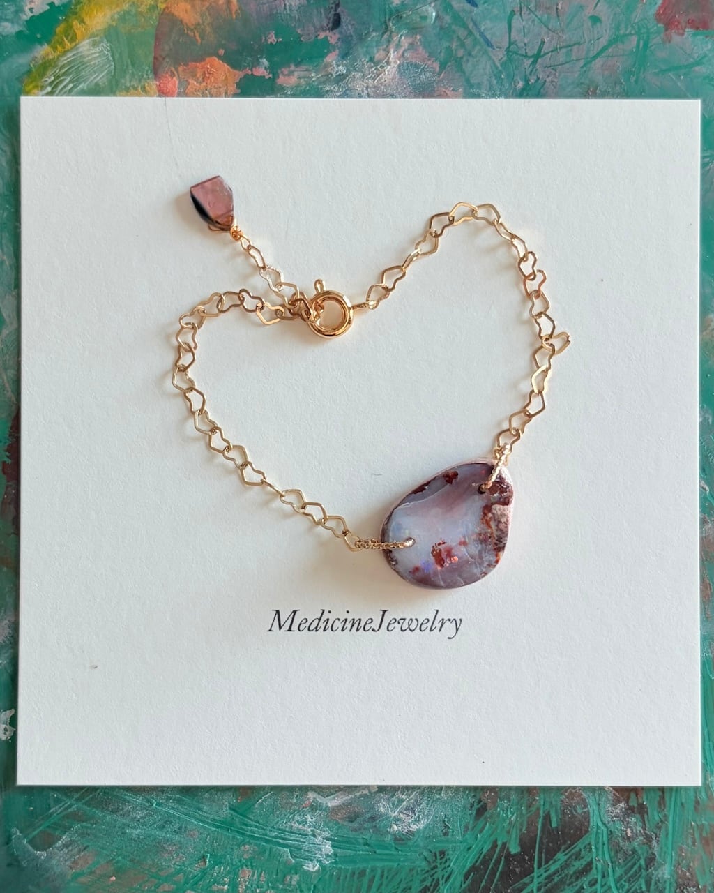 Earth Drop Bracelet オパールマトリックスとピンクトルマリンのハートチェーンブレスレット