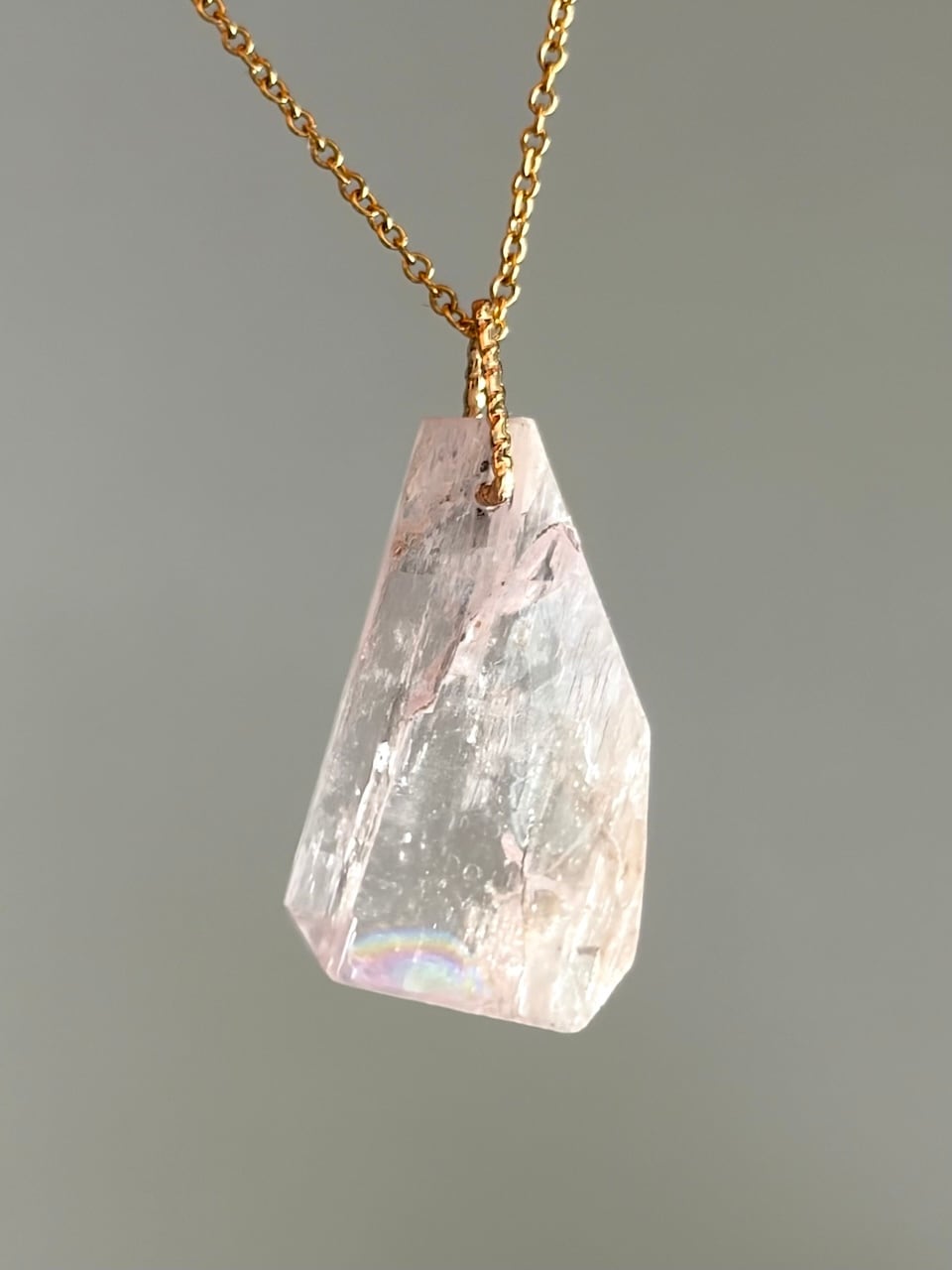 きれい過ぎない、でもラフすぎない。そんなある種の”中途半端さ”を、堂々とした魅力にするこのクンツァイトには、やはり「愛の石の女王」の品格を感じるのです。