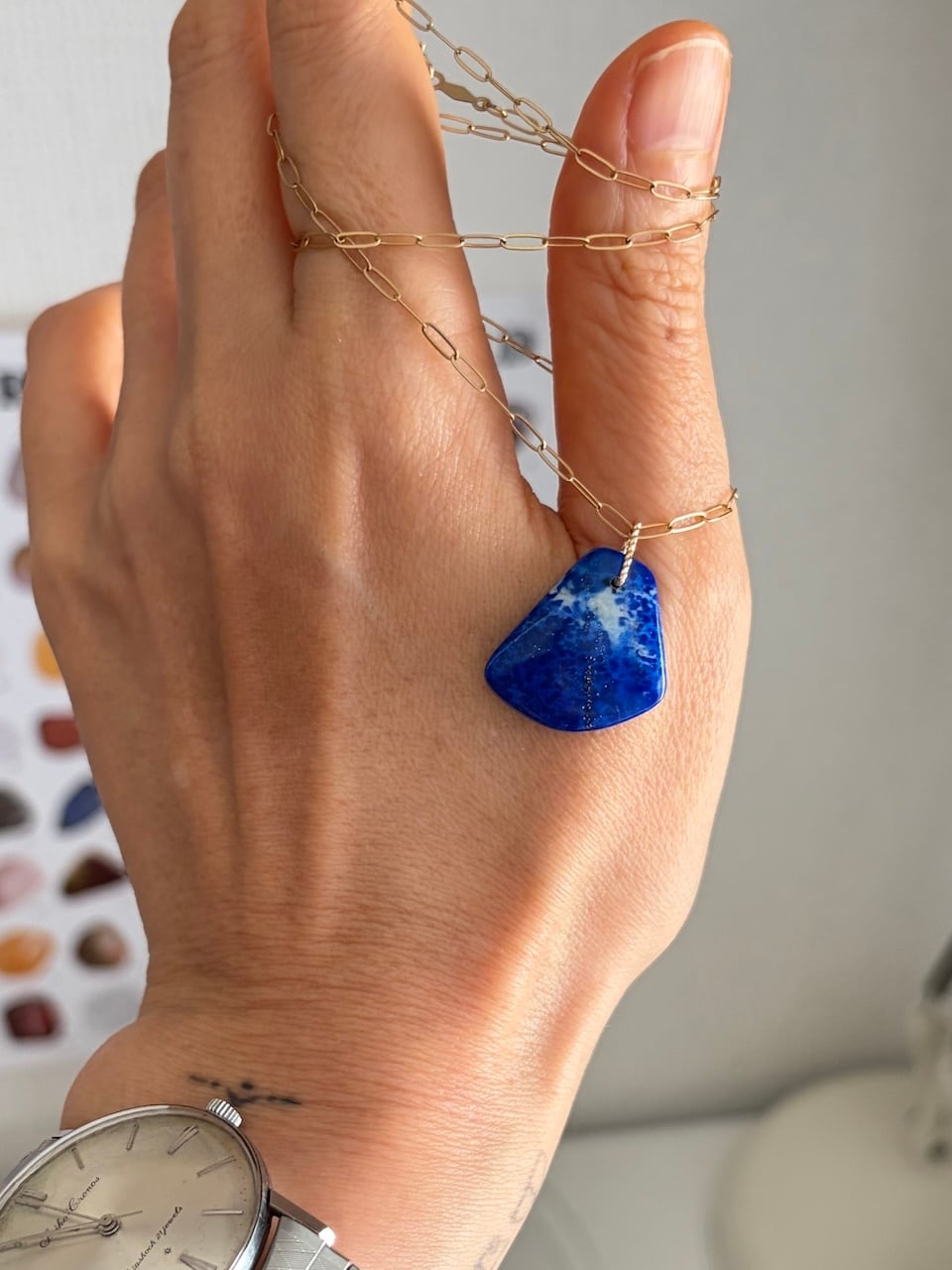 ツーソンで出会った、鮮やかなブルーのラピスラズリをペンダントチャームに仕立てました。