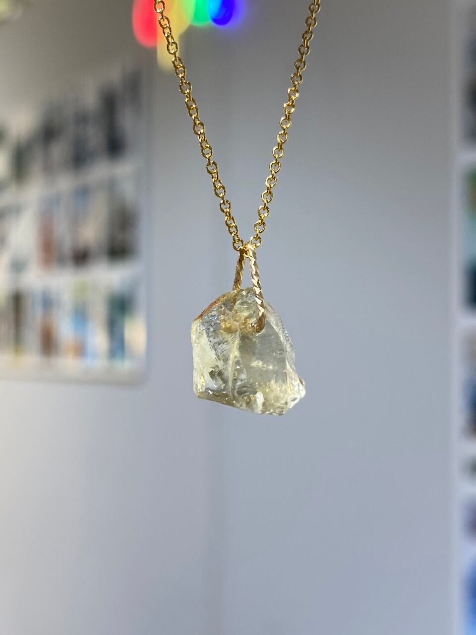 太陽のクリスタル・シトリン。勇気と活力を与え、豊かさを喜びを象徴するクリスタル。自分を信じる力を高めて、創造性を発揮したいあなたにぴったりの一粒です。透明度が高いレモンイエローで首元からポジティブな輝きを☆