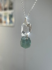 ツーソンミネラルショーで買い付けたNY産のハーキマーダイヤモンドと、グリーンアパタイトの贅沢なダブルチャーム。上品なのに存在感抜群のコンビネーションを首元に輝かせませんか?