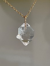 自然に研磨されたような滑らかな表面と、ダイヤモンドのような強い光沢が特徴。未加工のままでも美しい結晶形を持ち、きらめく輝きが魅力です。「ハーキマーダイヤモンド」という名前は、ニューヨーク州ハーキマー郡で産出されることから名付けられました。ダイヤモンドではなく、水晶の一種です。